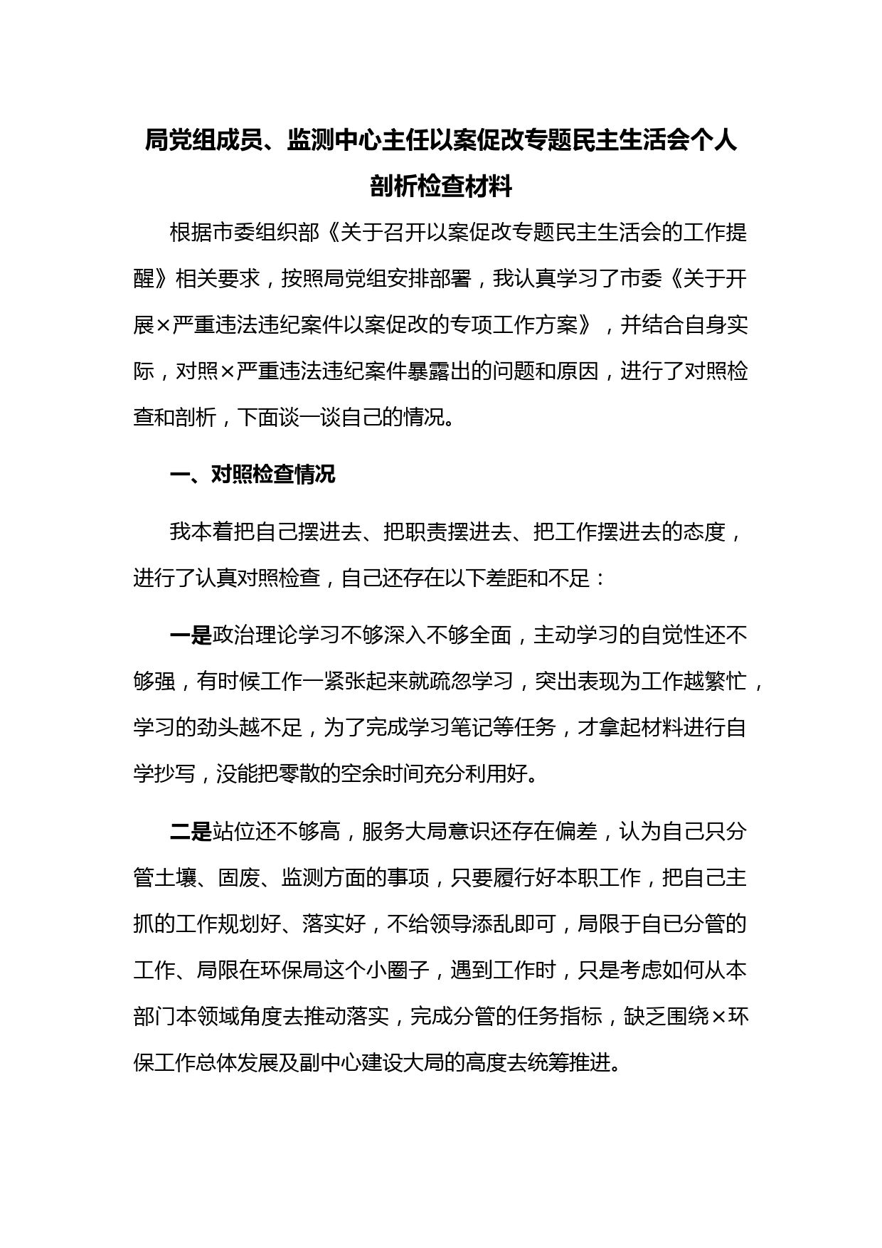 局黨組成員、監(jiān)測中心主任以案促改專題民主生活會個人剖析檢查材料VIP免費(fèi)