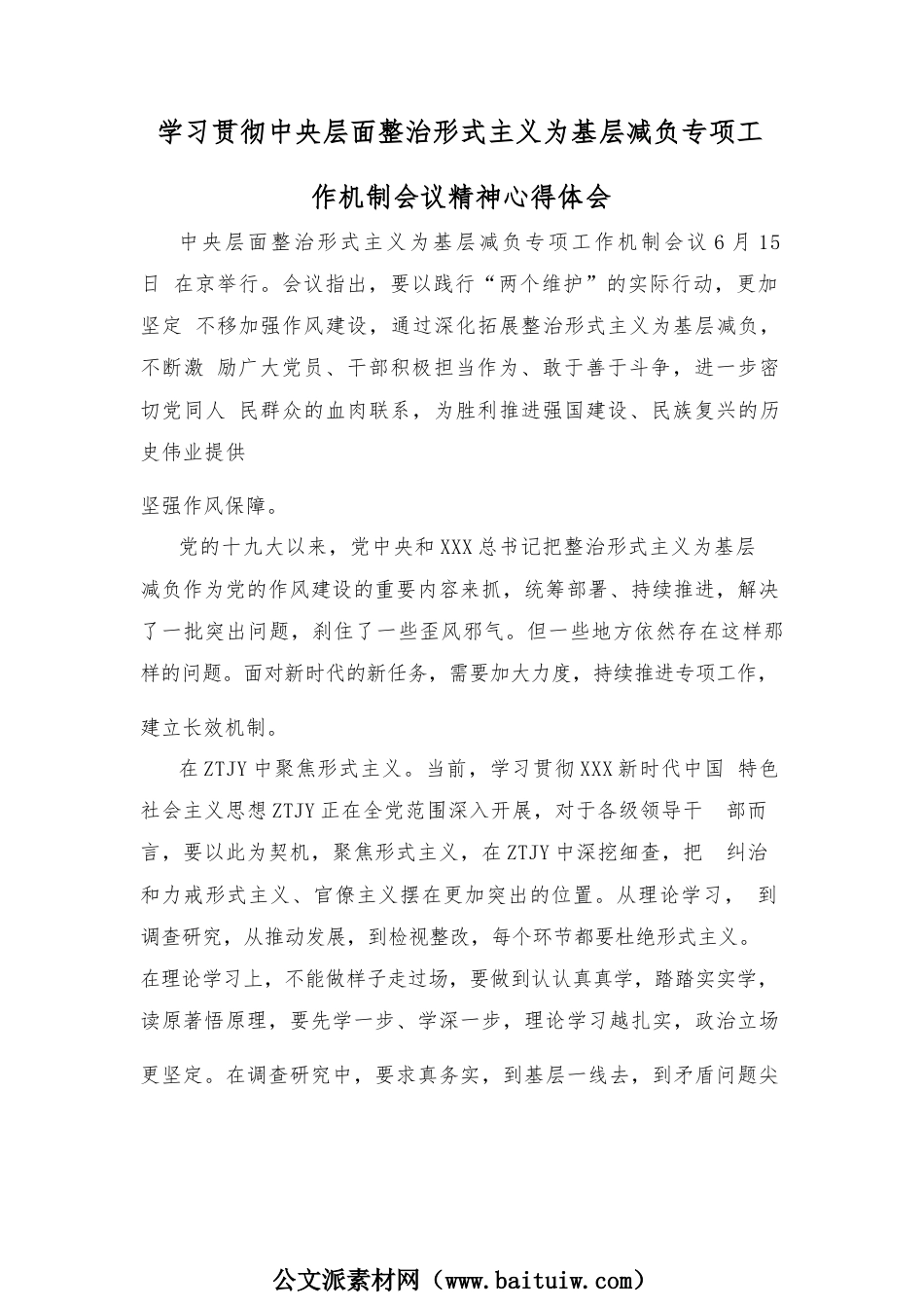 學(xué)習(xí)貫徹中央層面整治形式主義為基層減負(fù)專項工作機(jī)制會議精神心得體會VIP免費