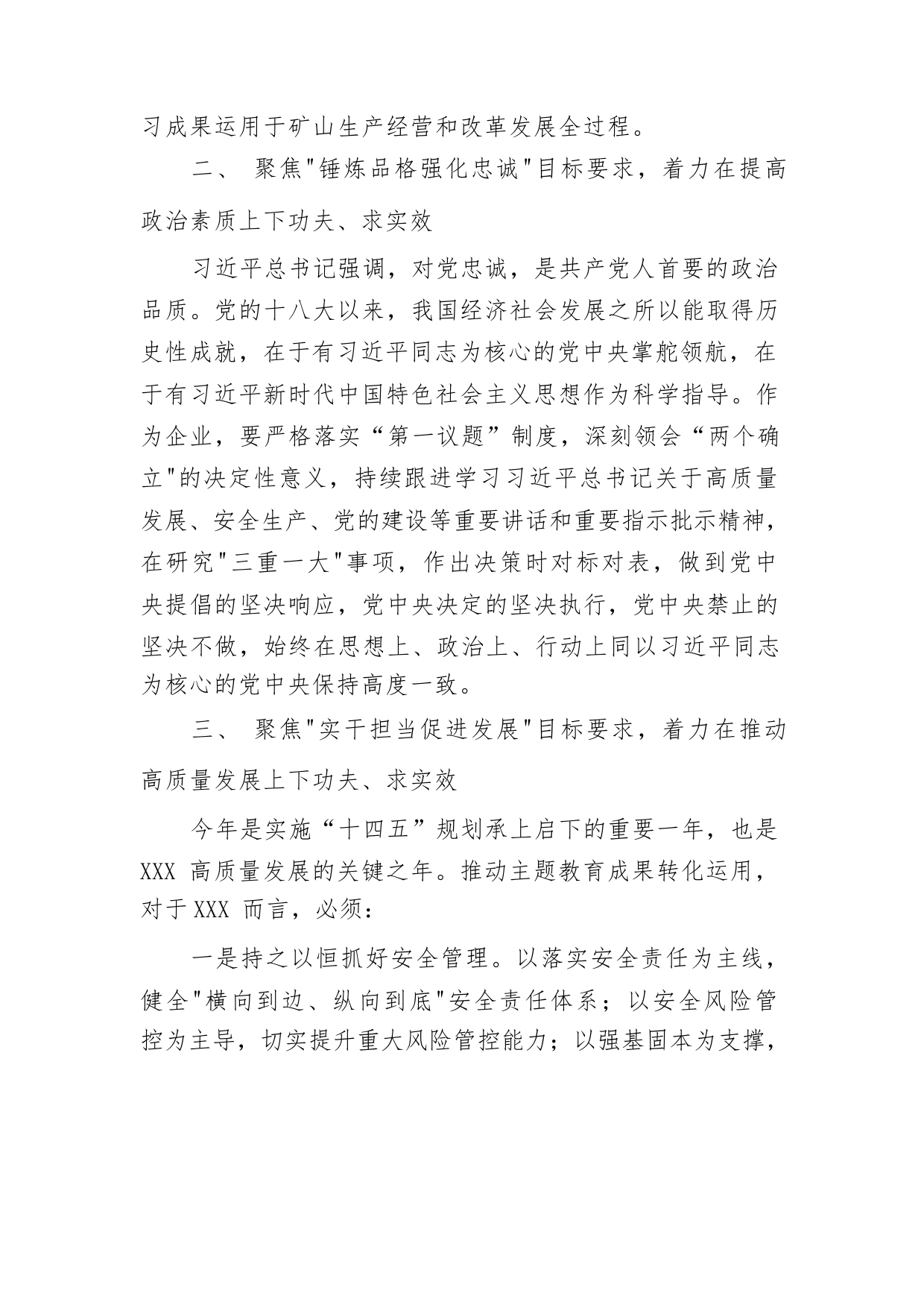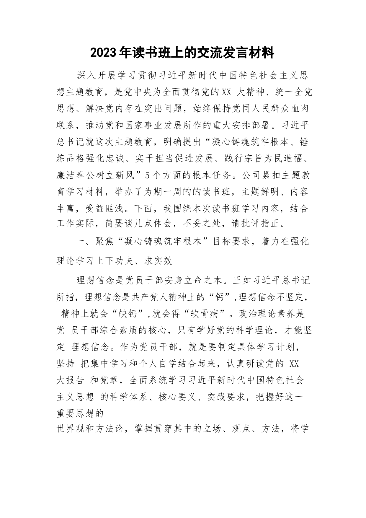 2023年讀書班上的交流發(fā)言材料深入開展學習貫徹習近平新時代中國特色社會主義思想主題教育,是黨中央為全面貫徹黨的XX大精神、統一全黨思想、解決黨內存在突出問題,始終保持黨同人民群眾血肉聯系,推動黨和國家事業(yè)發(fā)展所作的重大安排部署。習近平總書記就這次主題教育,明確提出“凝心鑄魂筑牢根本、錘煉品格強化忠誠、實干擔當促進發(fā)展、踐行宗旨為民造福、廉潔奉公樹立新風”5個方面的根本任務。公司緊扣主題教育學習材料,舉辦了為期一周的的讀書班,主題鮮明、內容豐富,受益匪淺。下面,我圍繞本次讀書班學習內容,結合工作實際,簡要談幾點體會,不妥之處,請批...