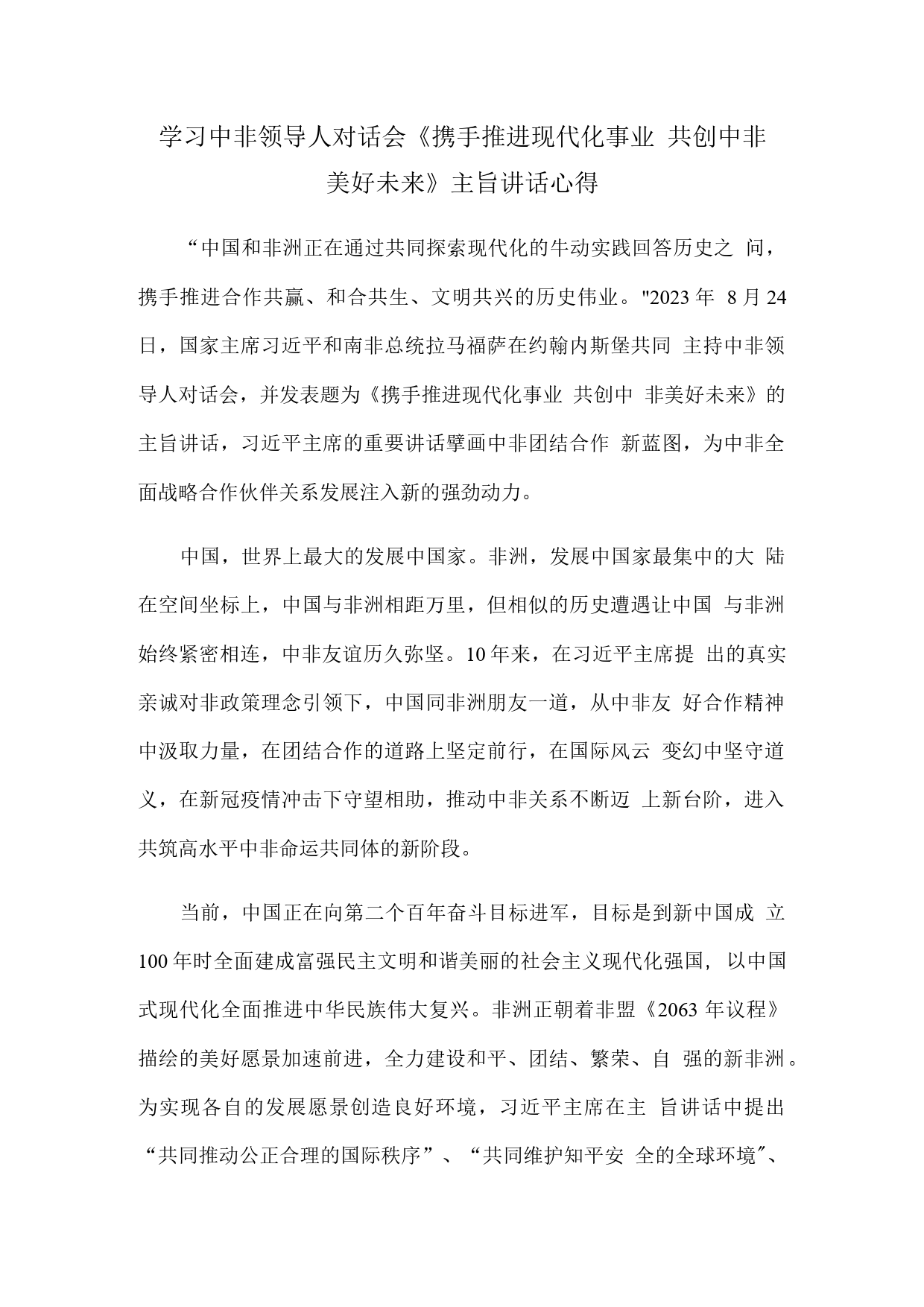 學(xué)習(xí)中非領(lǐng)導(dǎo)人對話會《攜手推進現(xiàn)代化事業(yè) 共創(chuàng)中非美好未來》主旨講話心得VIP免費