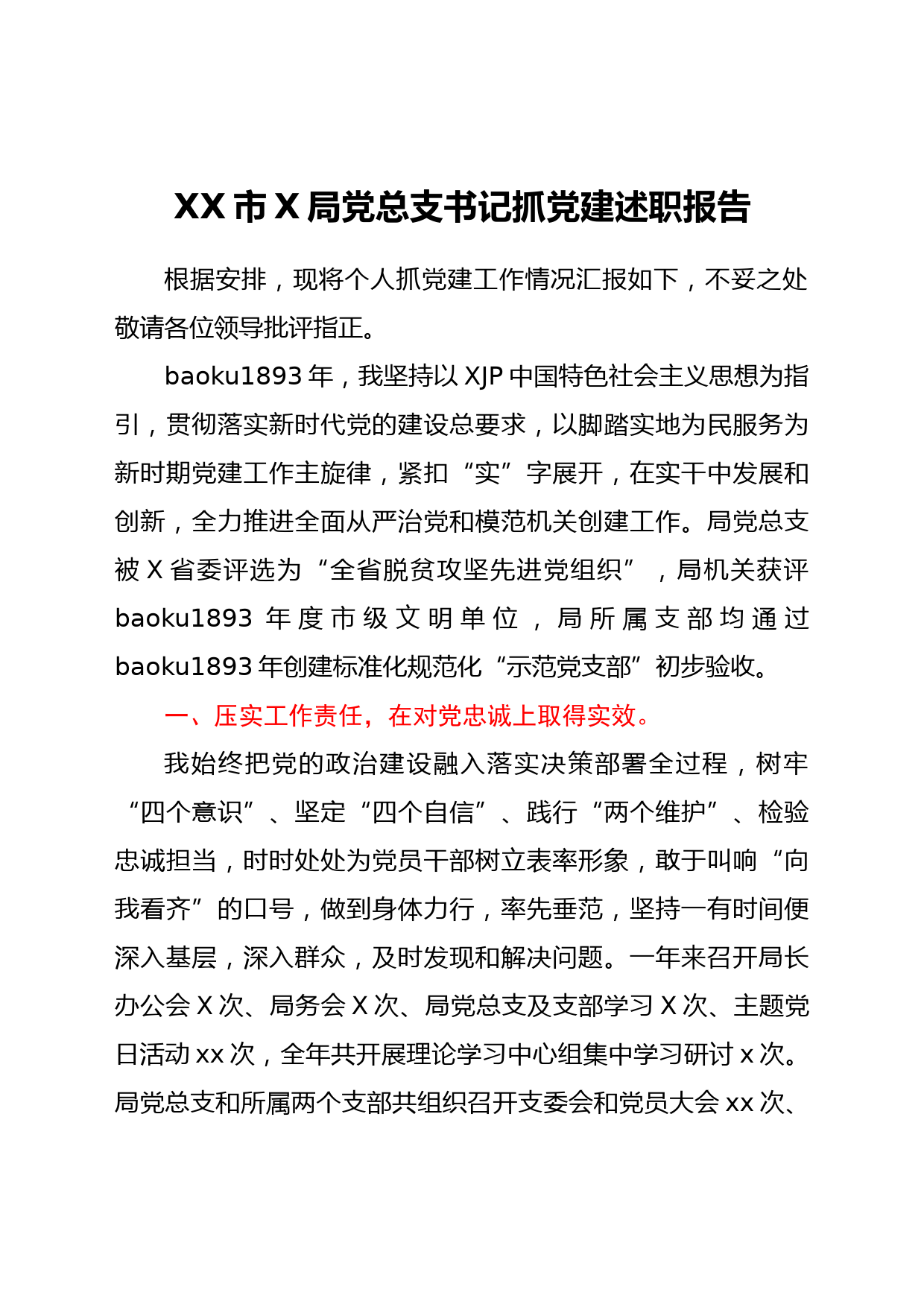 XX市X局黨總支書(shū)記抓黨建述職報(bào)告VIP免費(fèi)