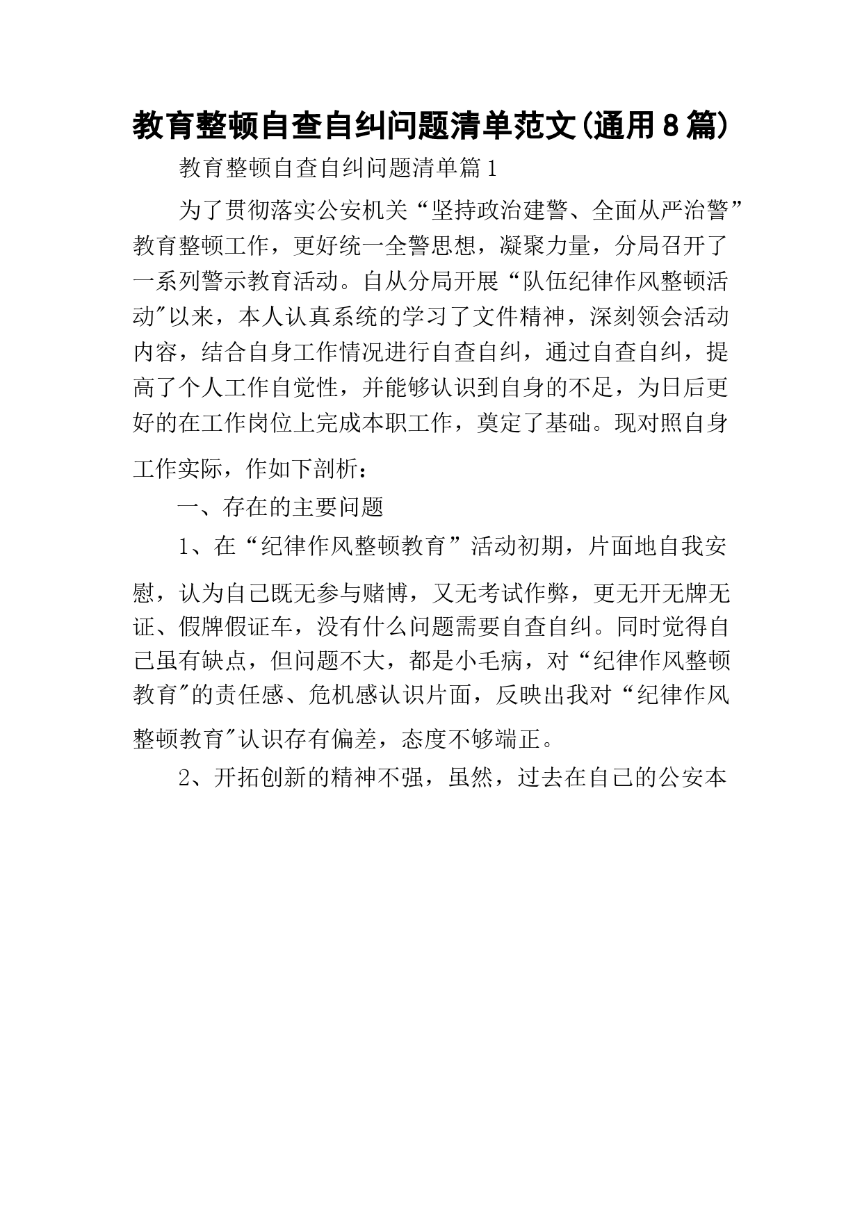 教育整頓自查自糾問題清單范文(通用8篇)VIP免費(fèi)
