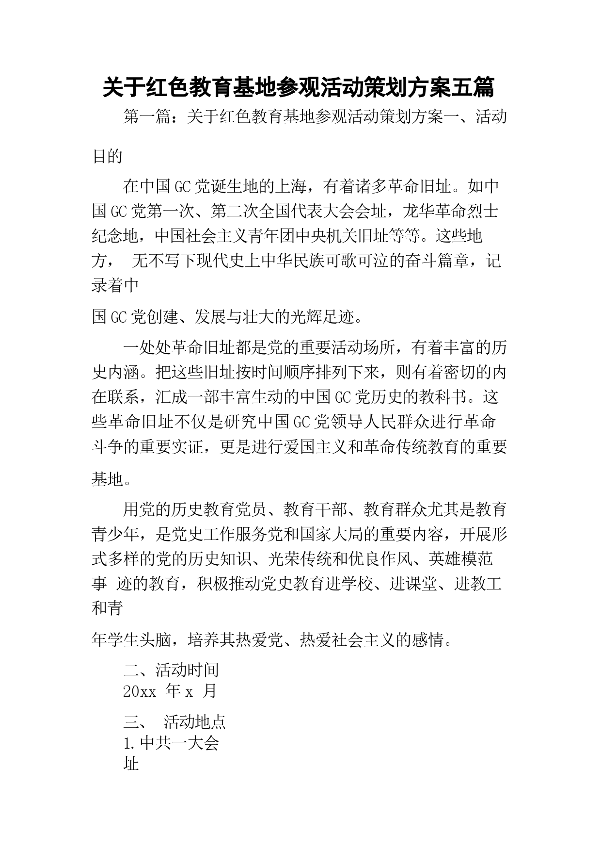 關于紅色教育基地參觀活動策劃方案五篇VIP免費