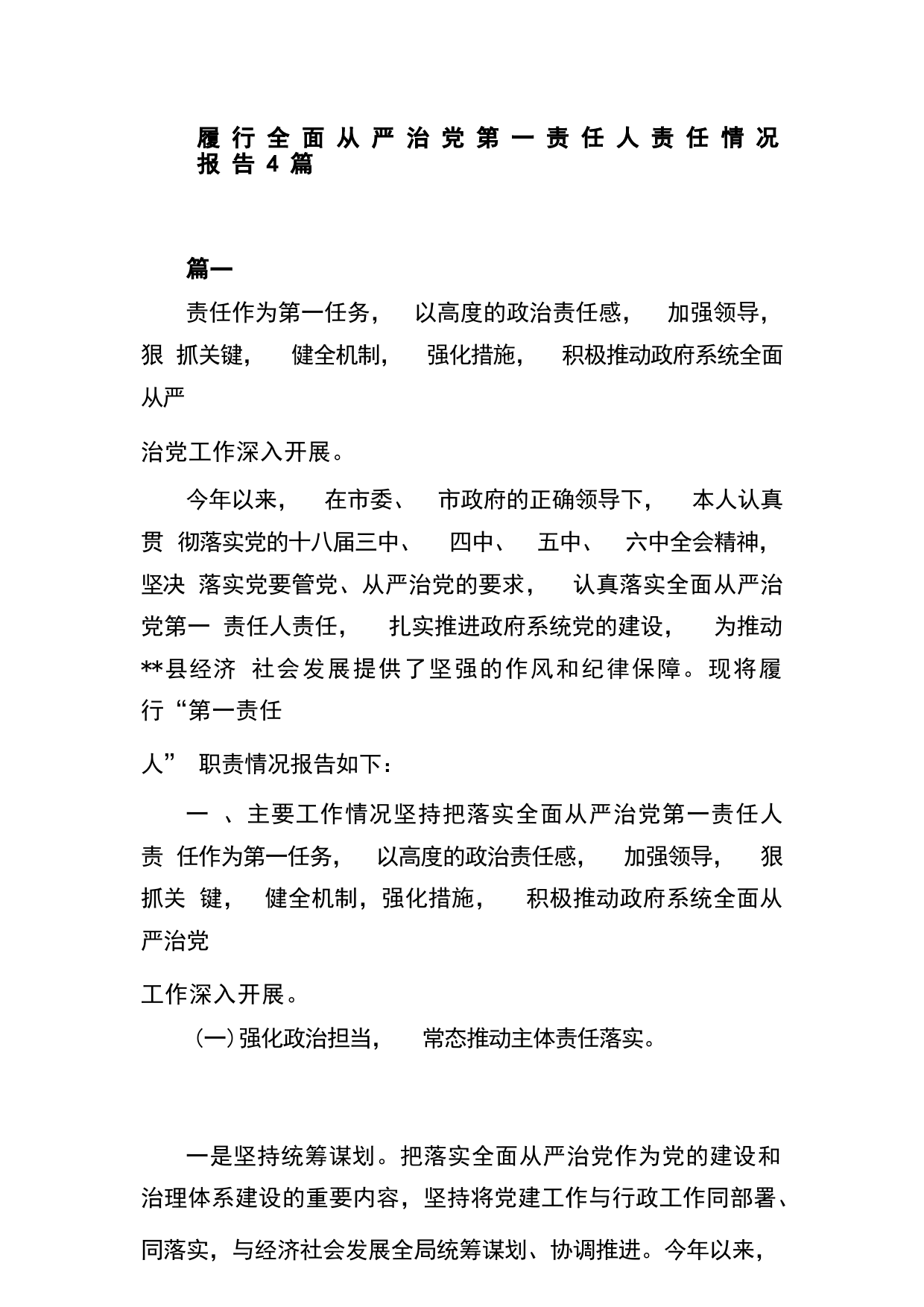 履行全面從嚴治黨第一責任人責任情況報告4篇VIP免費