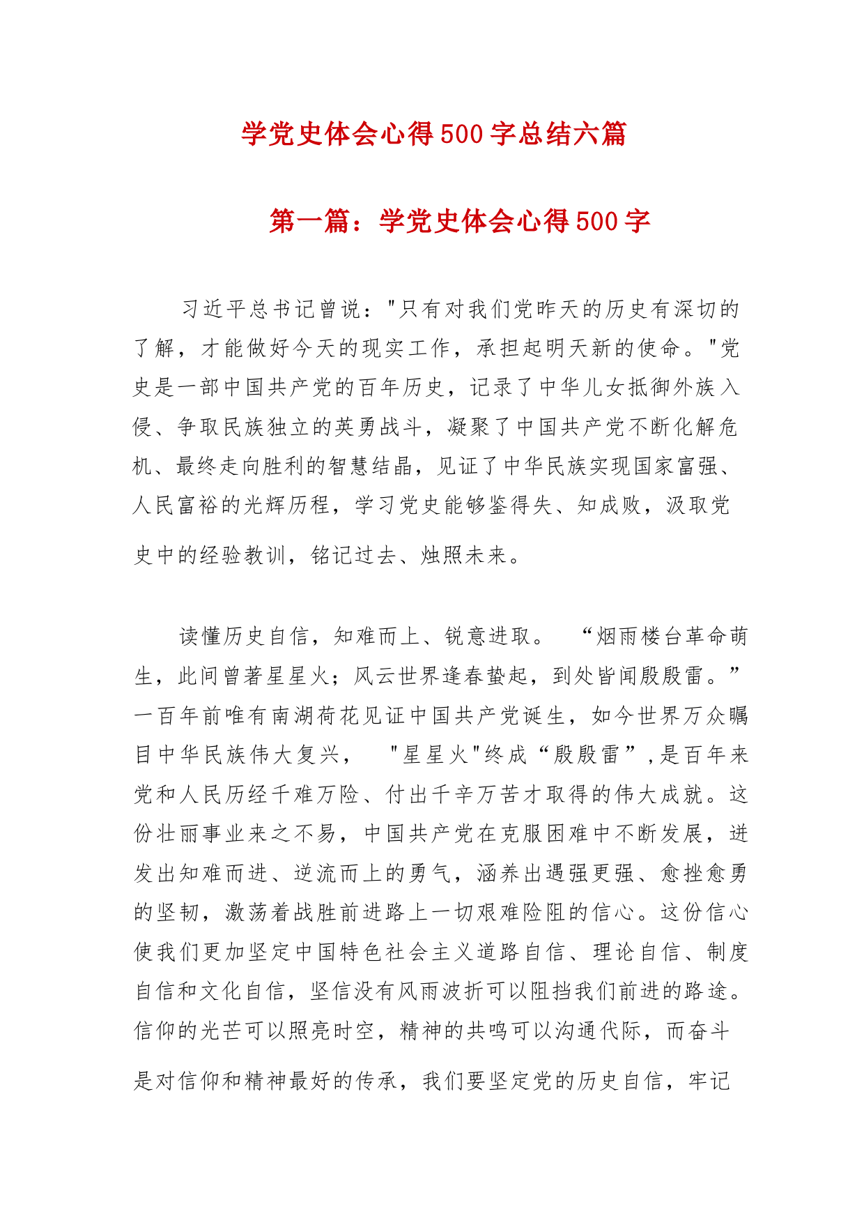 學(xué)黨史體會(huì)心得500字總結(jié)六篇VIP免費(fèi)