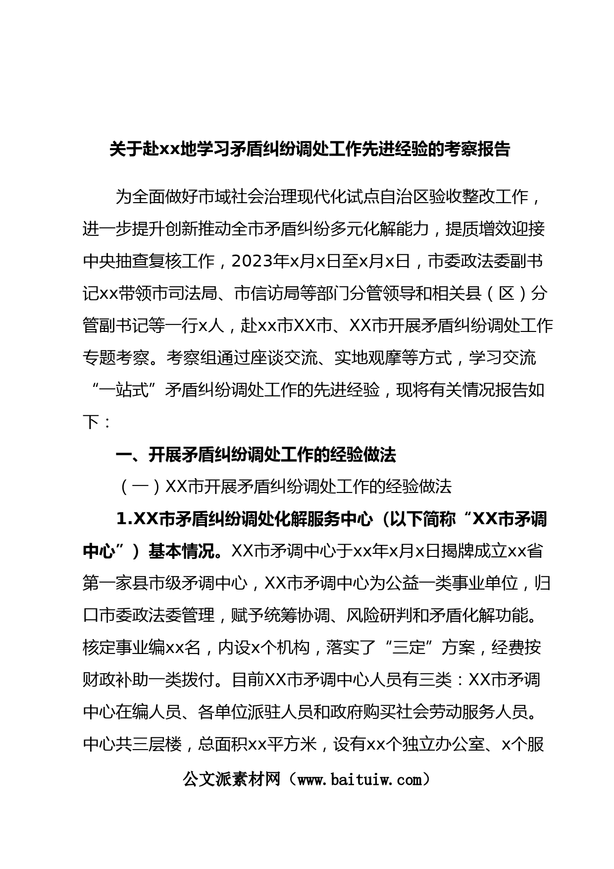 關(guān)于赴xx地學(xué)習(xí)矛盾糾紛調(diào)處工作先進(jìn)經(jīng)驗(yàn)的考察報(bào)告VIP免費(fèi)