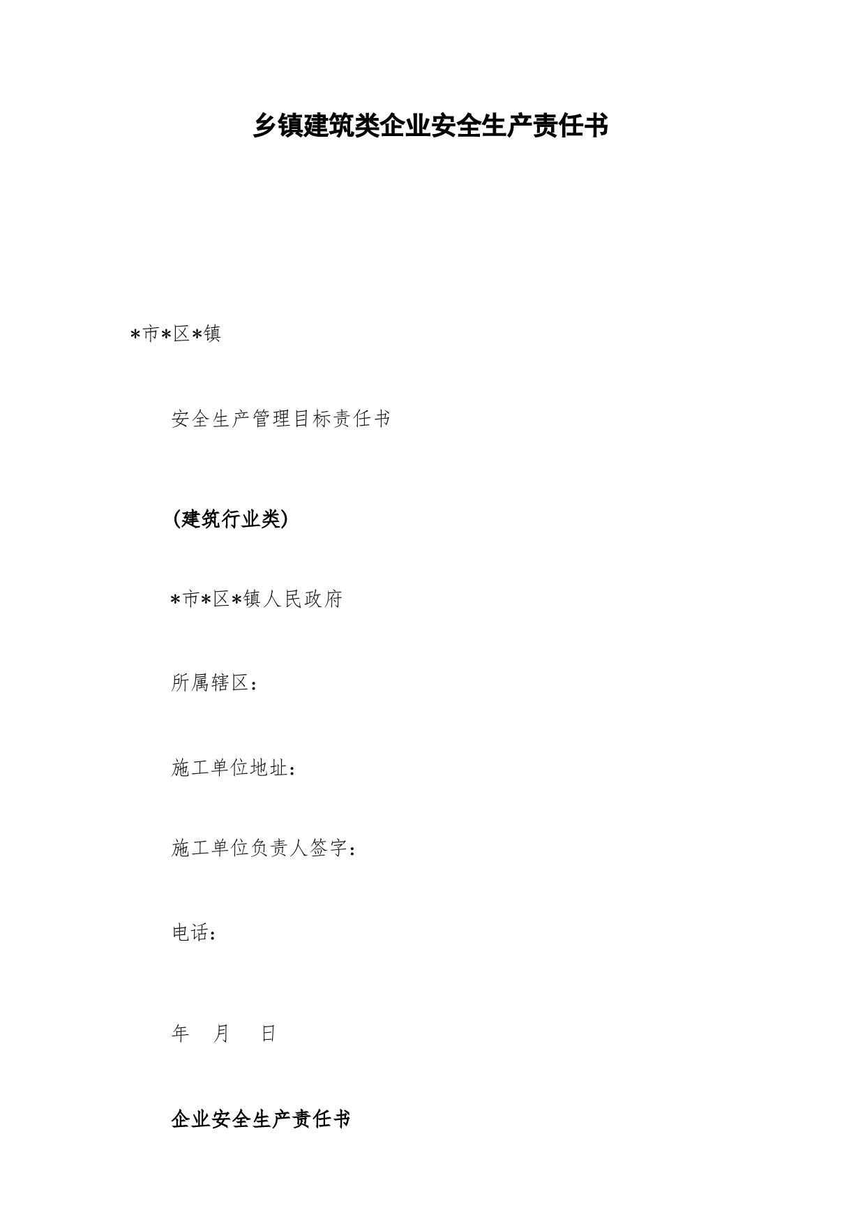 鄉(xiāng)鎮(zhèn)建筑類企業(yè)安全生產(chǎn)責任書VIP免費