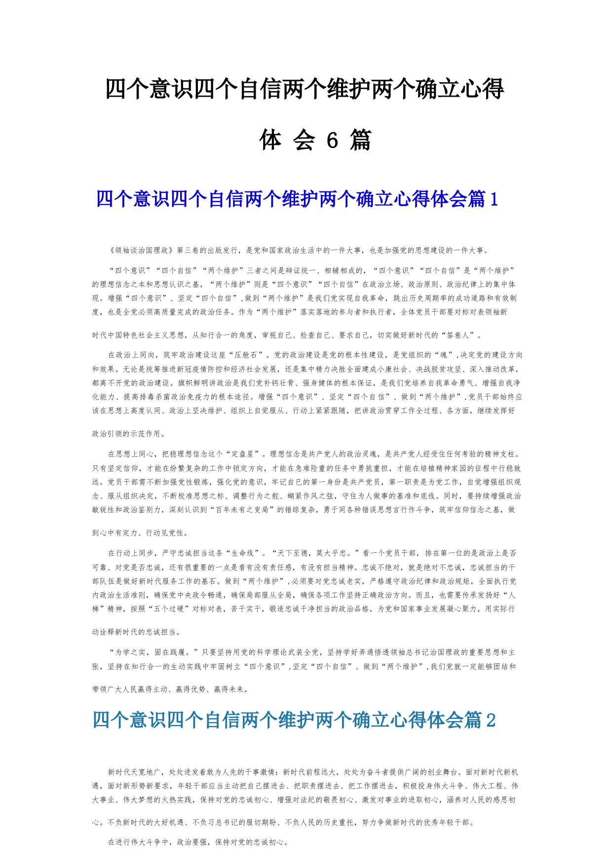 四個意識四個自信兩個維護(hù)兩個確立心得體會6篇VIP免費(fèi)