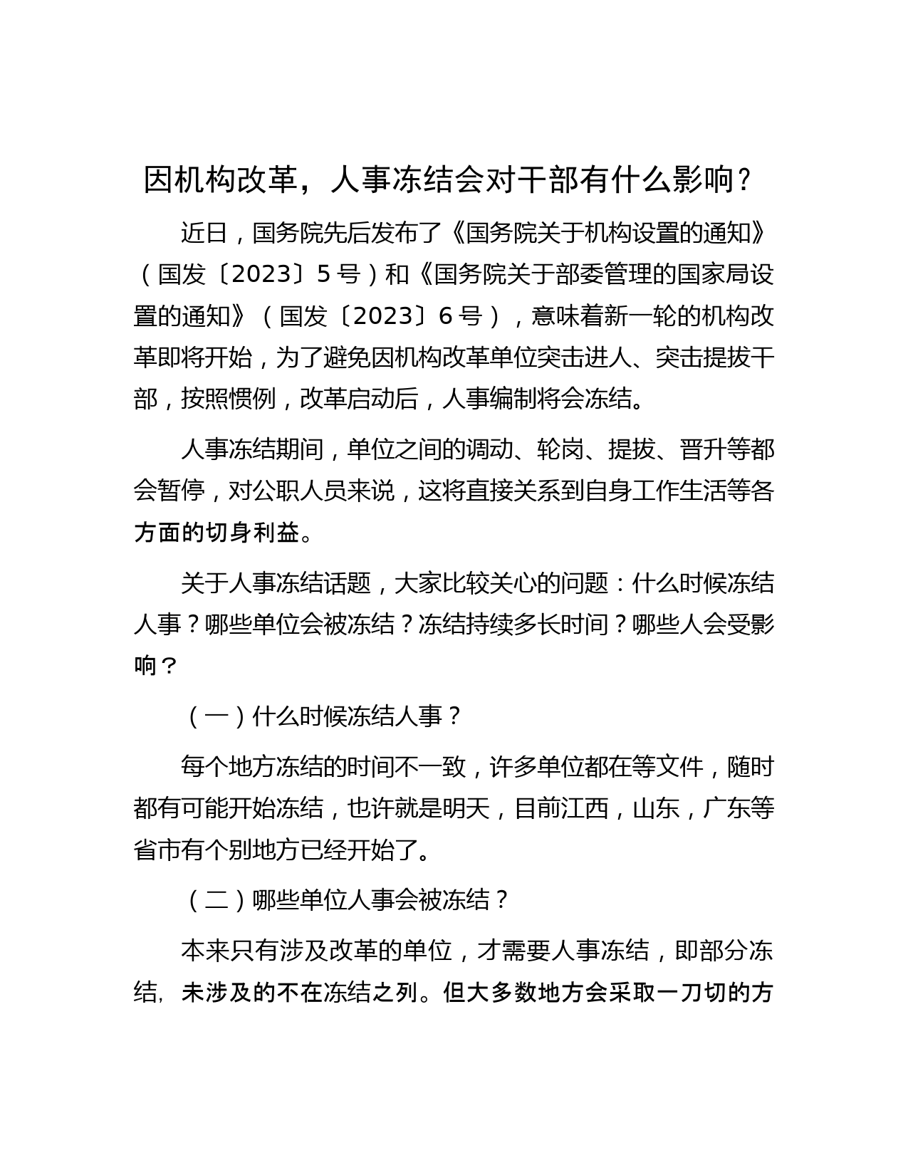 因機(jī)構(gòu)改革,人事凍結(jié)會(huì)對(duì)干部有什么影響?VIP免費(fèi)