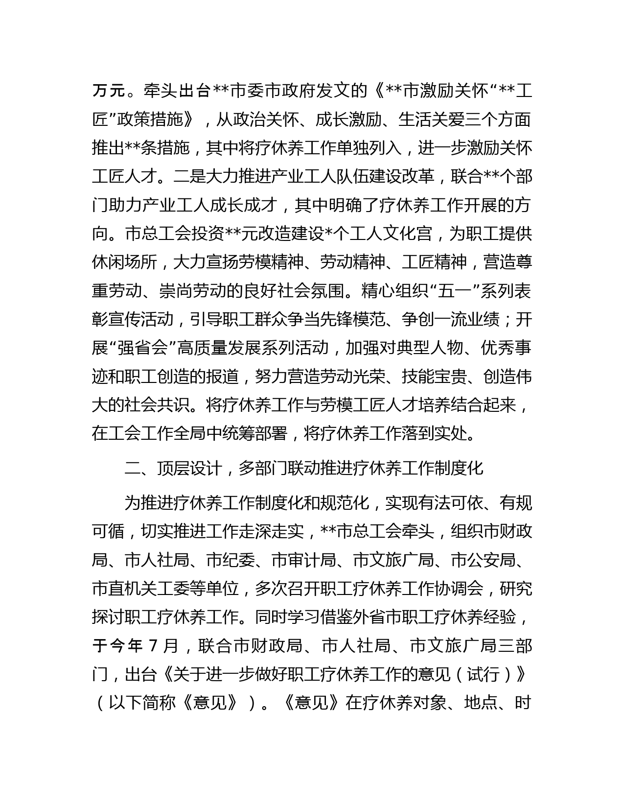 經(jīng)驗材料:市總工會推進療休養(yǎng)工作“三化”走深走實VIP免費