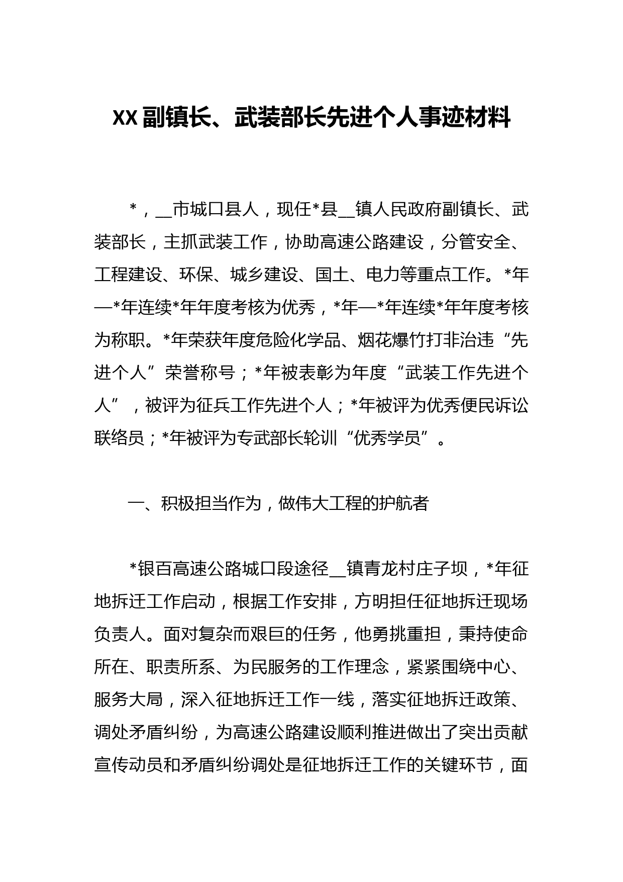 XX副鎮(zhèn)長(zhǎng)、武裝部長(zhǎng)先進(jìn)個(gè)人事跡材料VIP免費(fèi)