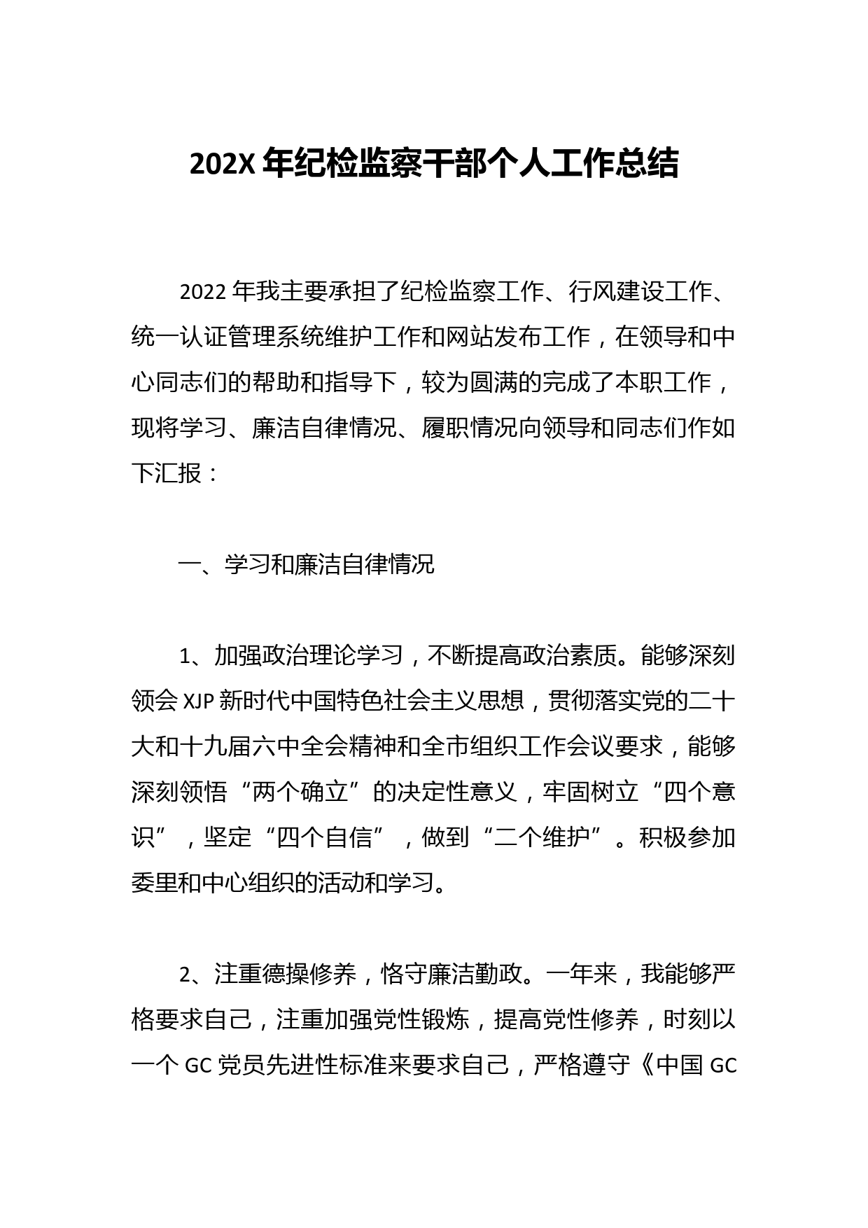 202X年紀(jì)檢監(jiān)察干部個(gè)人工作總結(jié)VIP免費(fèi)