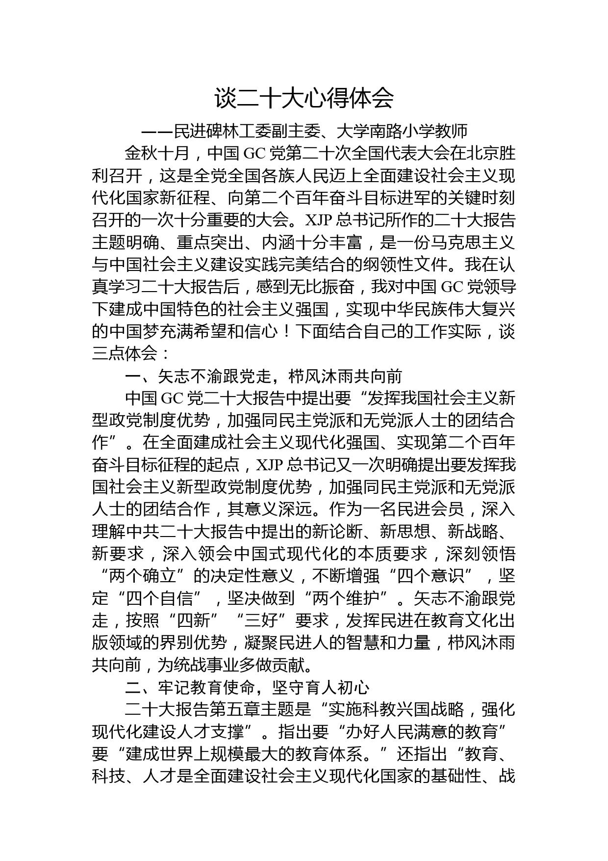 民進(jìn)碑林工委副主委、大學(xué)南路小學(xué)教師談二十大心得體會(20221028)VIP免費