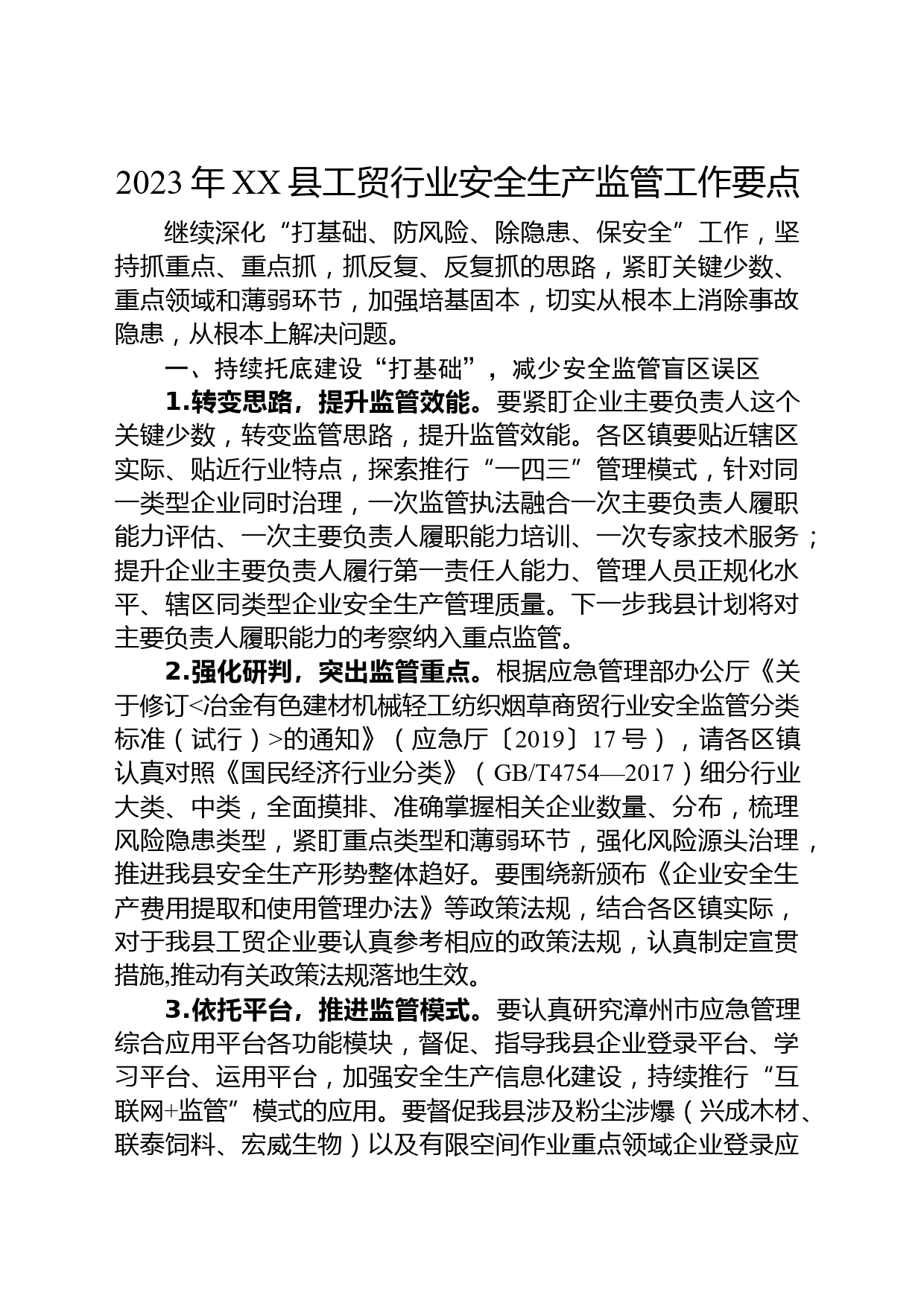2023年XX縣工貿(mào)行業(yè)安全生產(chǎn)監(jiān)管工作要點(20230323)VIP免費