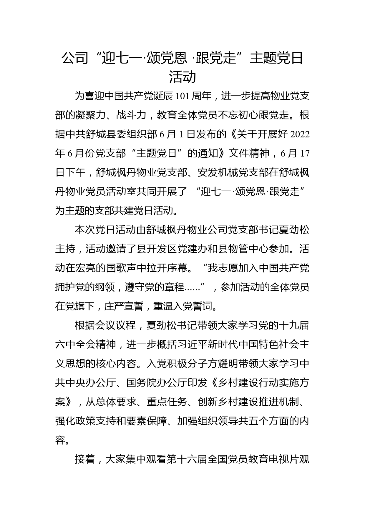 公司“迎七一·頌黨恩+·跟黨走”主題黨日活動VIP免費