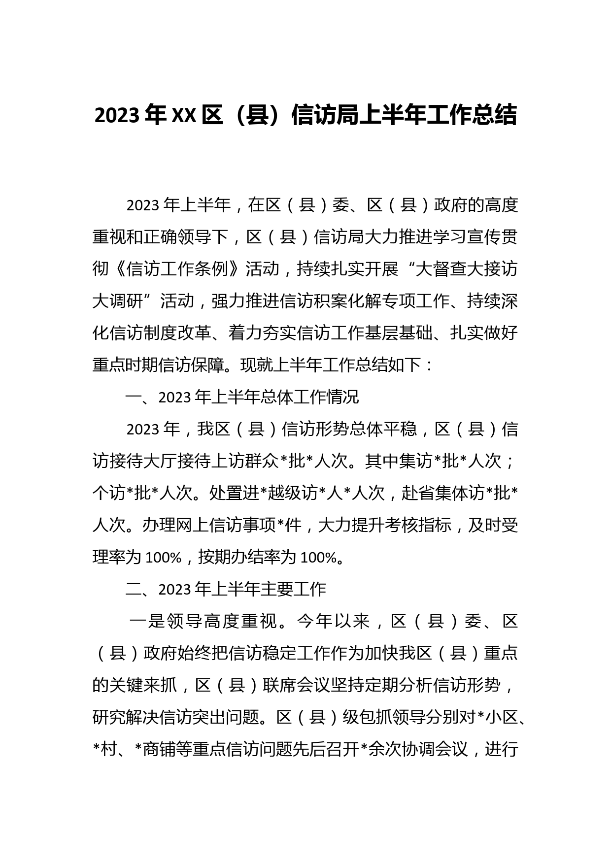 2023年XX區(qū)(縣)信訪局上半年的工作總結(jié)VIP免費(fèi)