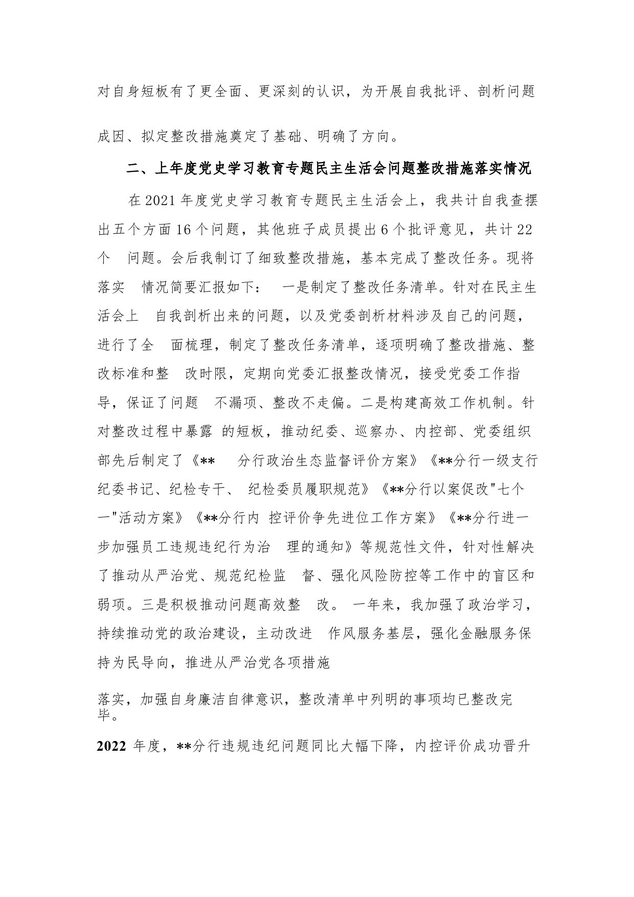 銀行黨員領(lǐng)導(dǎo)干部2023年六個方面民主生活會對照檢查材料VIP免費