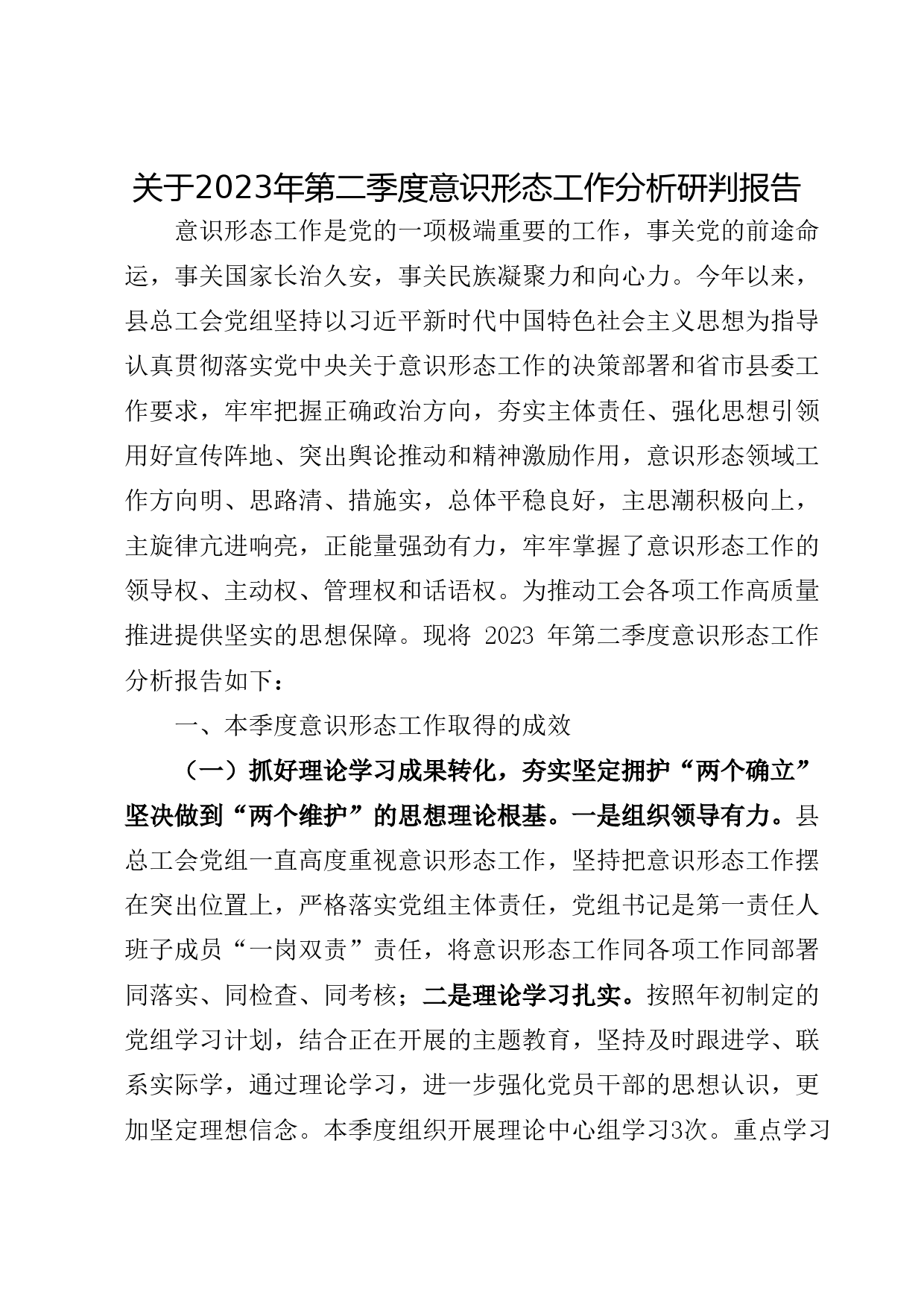 縣總工會(huì)2023年第二季度意識(shí)形態(tài)研判報(bào)告VIP免費(fèi)