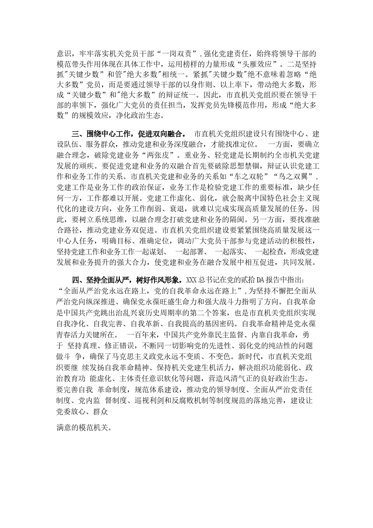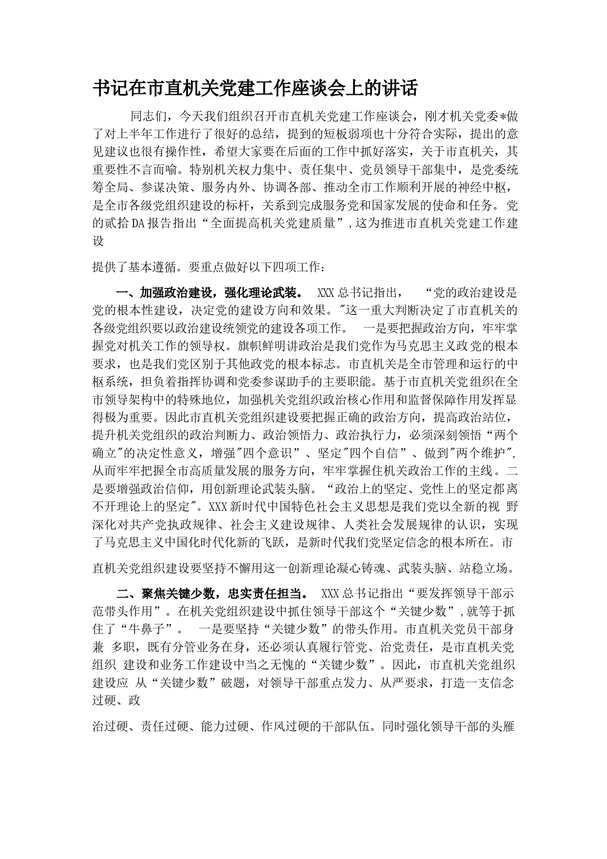 書記在市直機關(guān)黨建工作座談會上的講話VIP免費