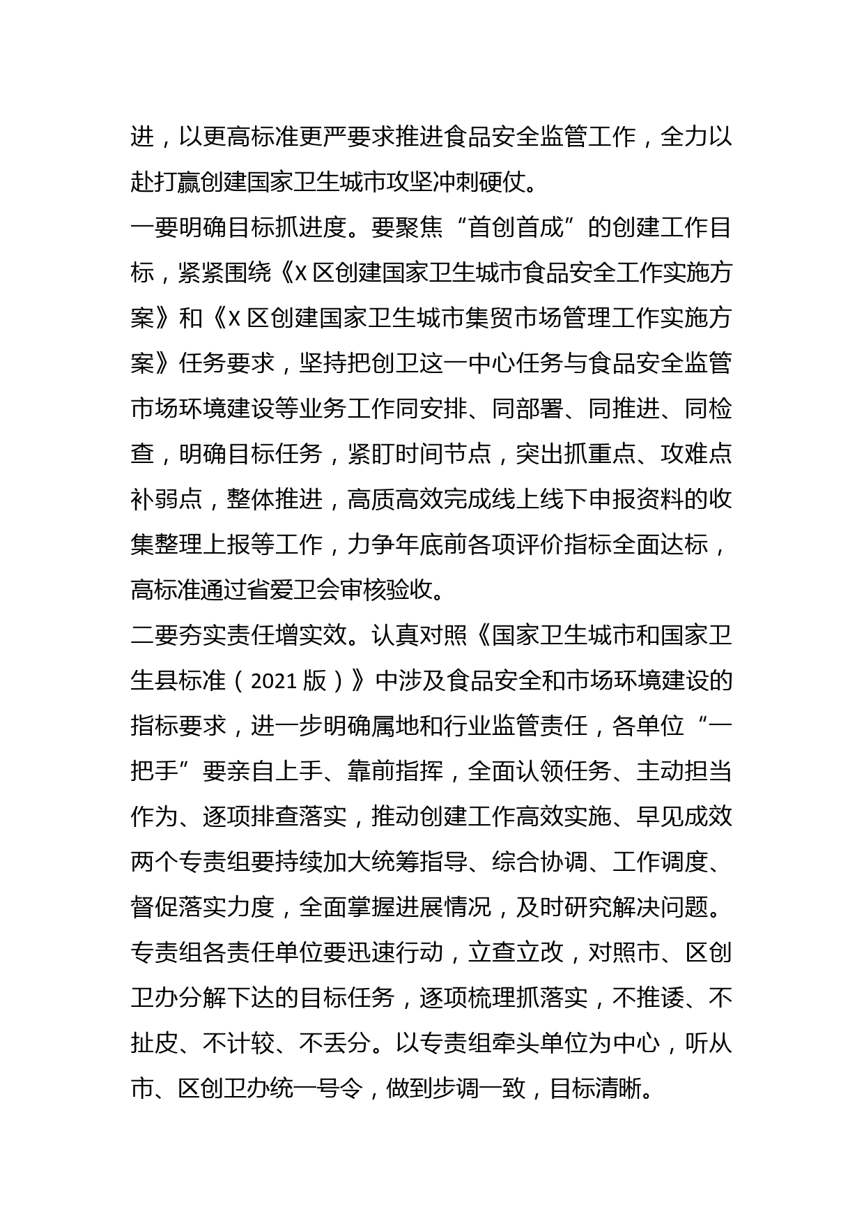 在全區(qū)創(chuàng)建國家衛(wèi)生城市食品安全專責組推進會議上的講話VIP免費