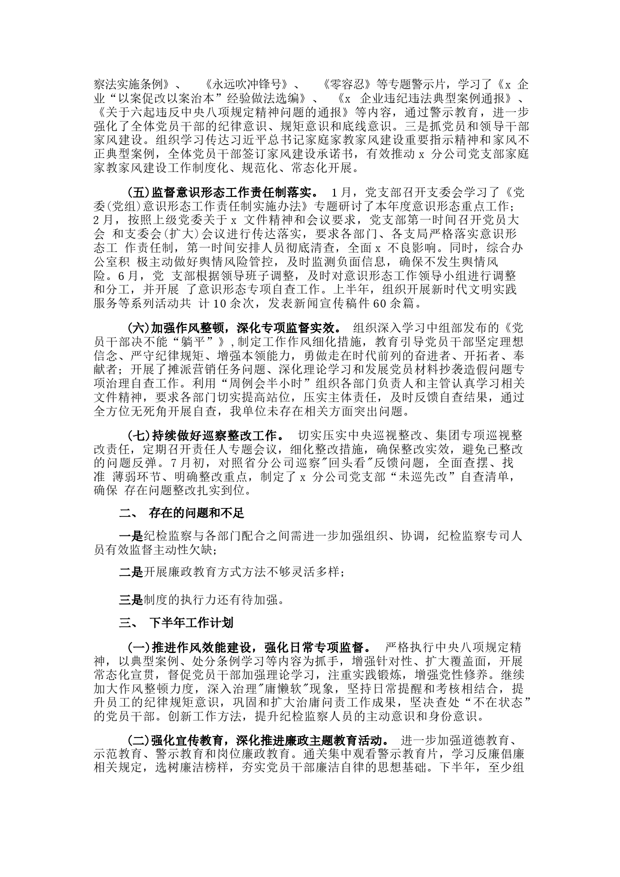 某國企分公司2023年上半年紀檢監(jiān)察工作總結(jié)VIP免費