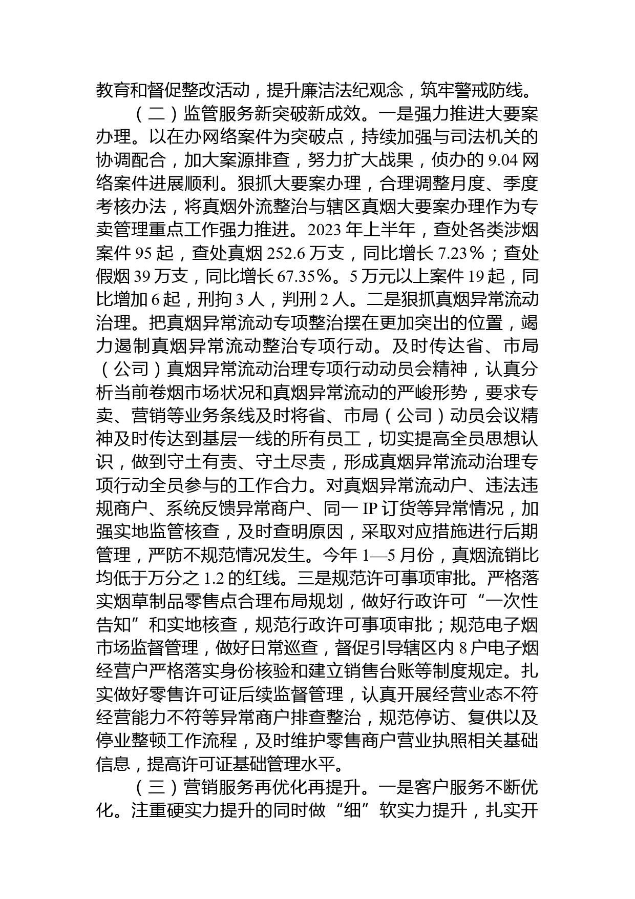 2023年在市煙草專賣局上半年工作總結VIP免費