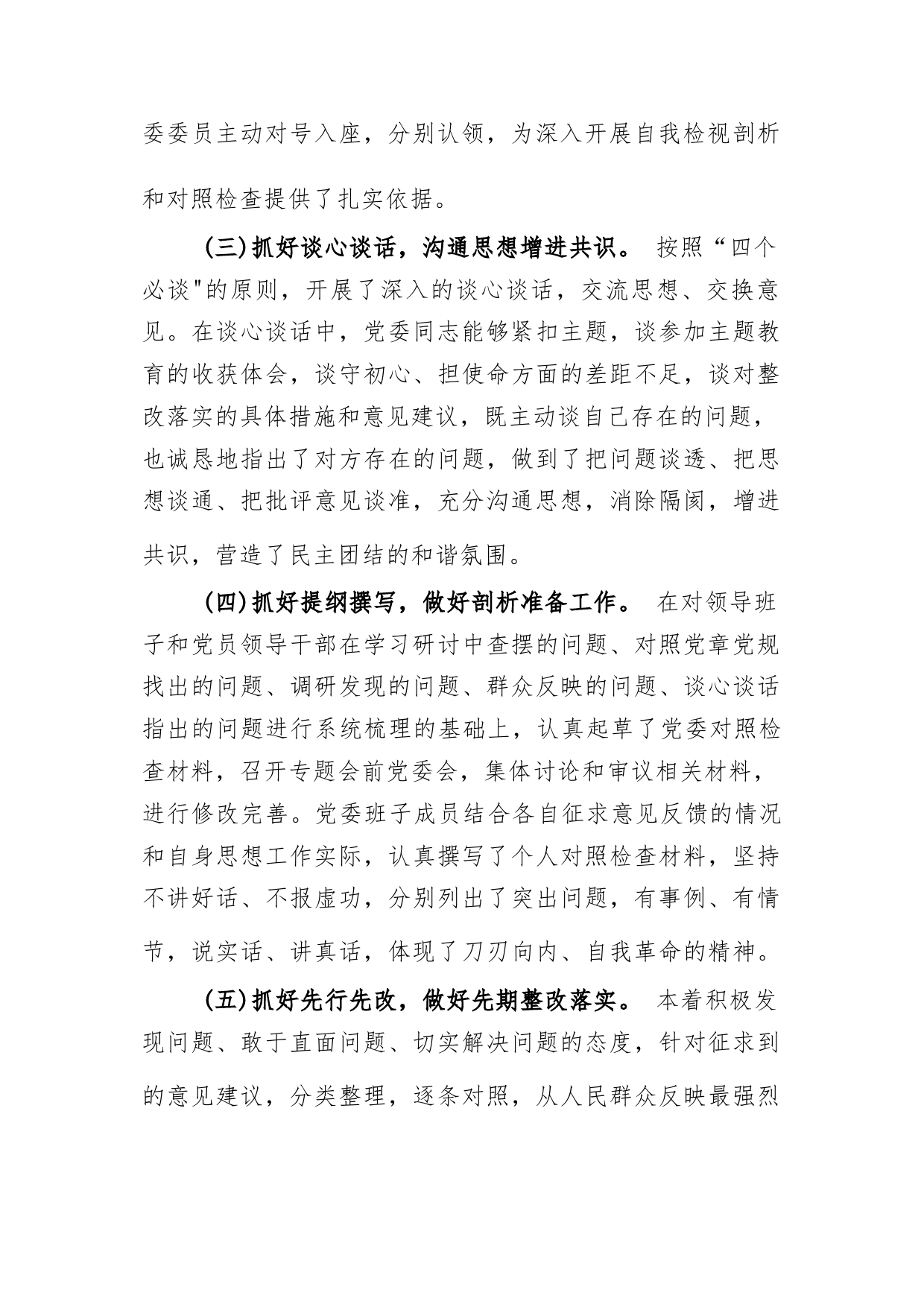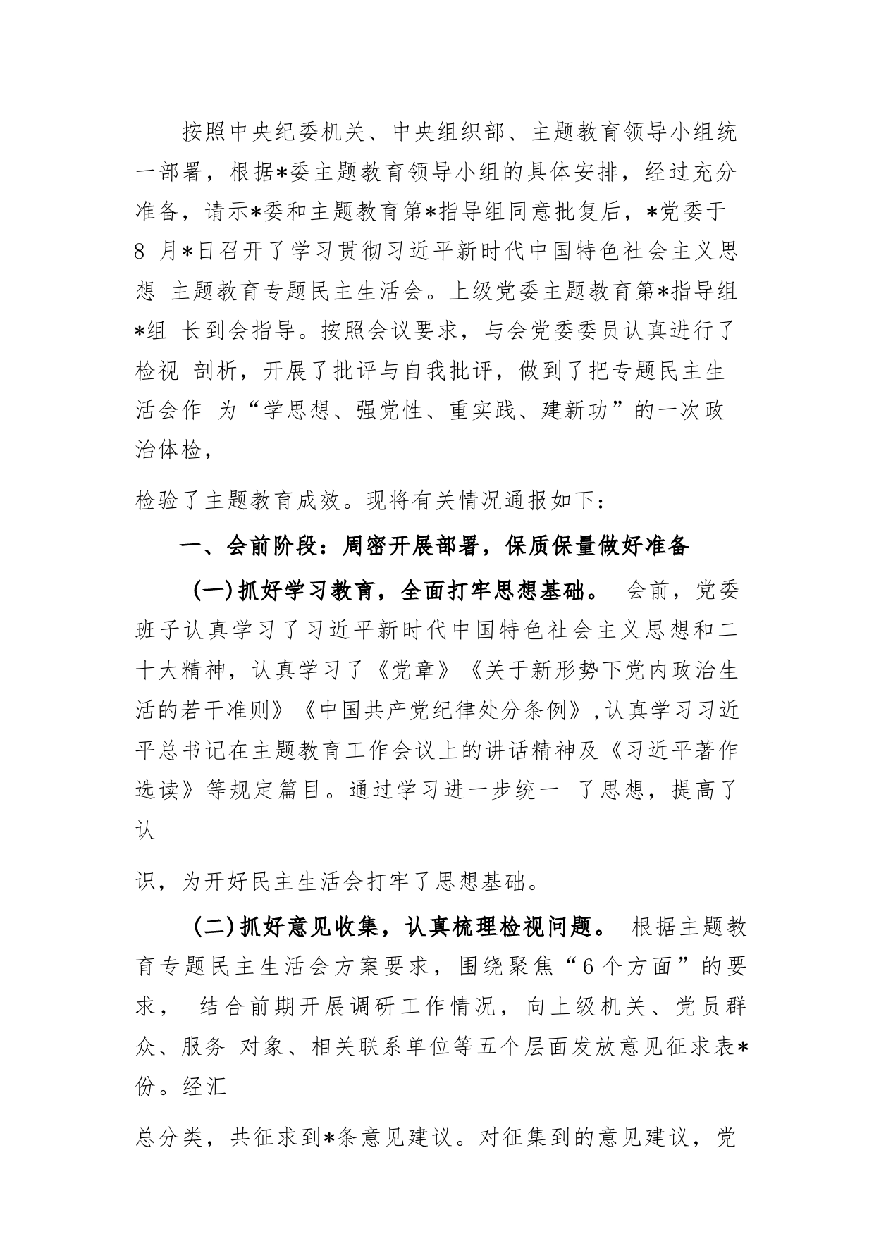 按照中央紀委機關(guān)、中央組織部、主題教育領(lǐng)導(dǎo)小組統(tǒng)一部署,根據(jù)委主題教育領(lǐng)導(dǎo)小組的具體安排,經(jīng)過充分準備,請示委和主題教育第指導(dǎo)組同意批復(fù)后,黨委于8月日召開了學(xué)習貫徹習近平新時代中國特色社會主義思想主題教育專題民主生活會。上級黨委主題教育第指導(dǎo)組組長到會指導(dǎo)。按照會議要求,與會黨委委員認真進行了檢視剖析,開展了批評與自我批評,做到了把專題民主生活會作為“學(xué)思想、強黨性、重實踐、建新功”的一次政治體檢,檢驗了主題教育成效?,F(xiàn)將有關(guān)情況通報如下:一、會前階段:周密開展部署,保質(zhì)保量做好準備(一)抓好學(xué)習教育,全面打牢思想基礎(chǔ)。會前...