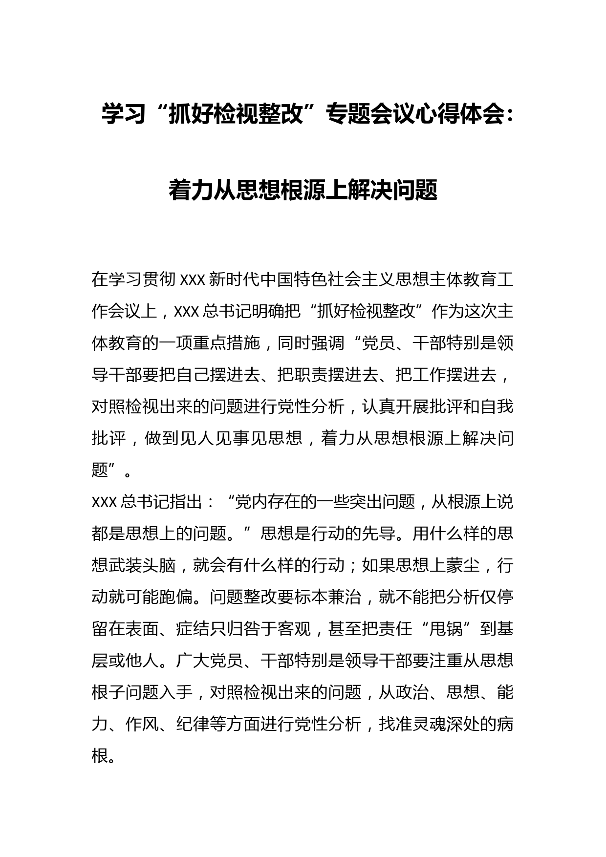學習“抓好檢視整改”專題會議心得體會:著力從思想根源上解決問題VIP免費