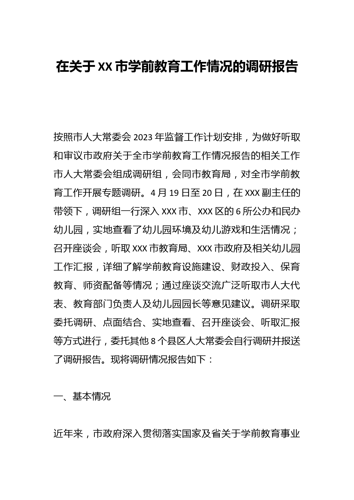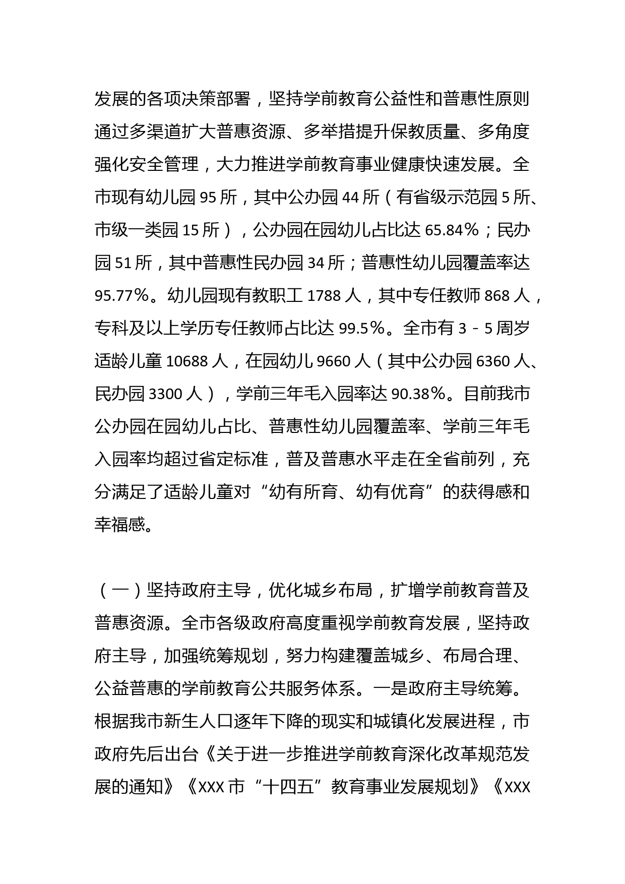 在關(guān)于XX市學(xué)前教育工作情況的調(diào)研報告VIP免費