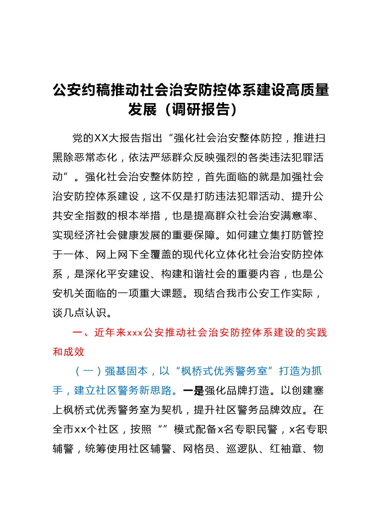 公安約稿推動社會治安防控體系建設(shè)高質(zhì)量發(fā)展(調(diào)研報告)VIP免費