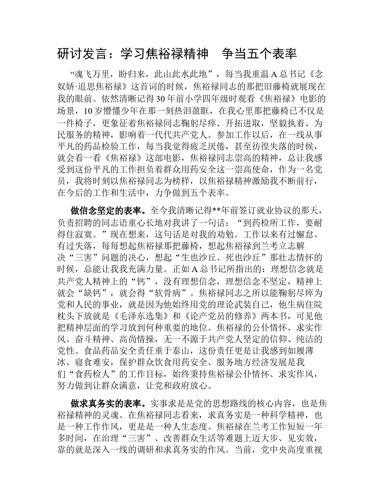 研討發(fā)言:學(xué)習(xí)焦裕祿精神 爭當(dāng)五個表率VIP免費(fèi)