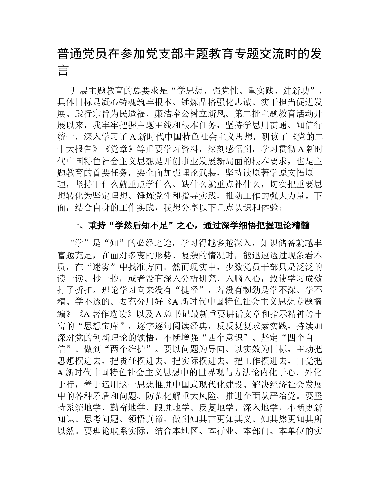 普通黨員在參加黨支部主題教育專題交流時的發(fā)言VIP免費(fèi)