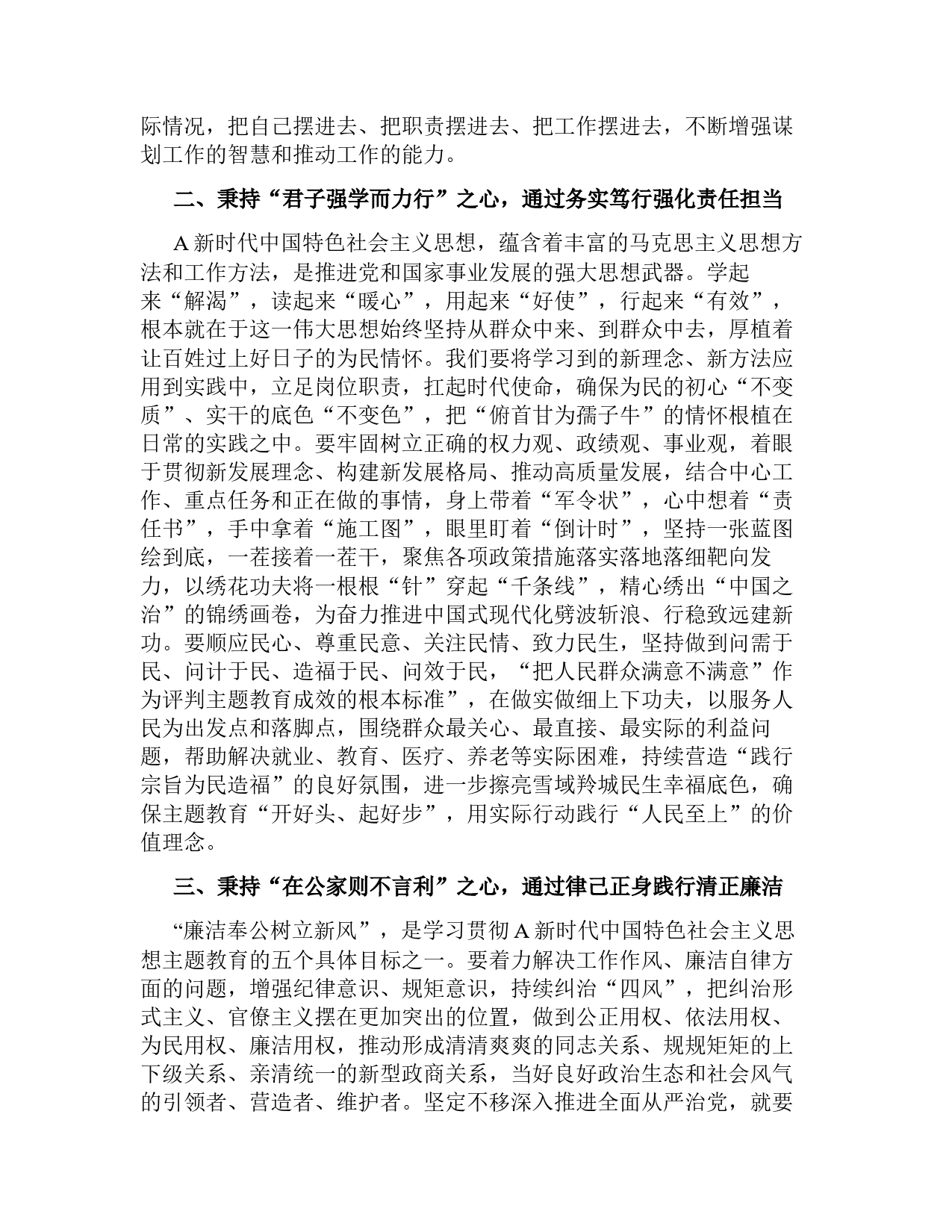 普通黨員在參加黨支部主題教育專題交流時的發(fā)言開展主題教育的總要求是“學(xué)思想、強(qiáng)黨性、重實踐、建新功”,具體目標(biāo)是凝心鑄魂筑牢根本、錘煉品格強(qiáng)化忠誠、實干擔(dān)當(dāng)促進(jìn)發(fā)展、踐行宗旨為民造福、廉潔奉公樹立新風(fēng)。第二批主題教育活動開展以來,我牢牢把握主題主線和根本任務(wù),堅持學(xué)思用貫通、知信行統(tǒng)一,深入學(xué)習(xí)了A新時代中國特色社會主義思想,研讀了《黨的二十大報告》《黨章》等重要學(xué)習(xí)資料,深刻感悟到,學(xué)習(xí)貫徹A新時代中國特色社會主義思想是開創(chuàng)事業(yè)發(fā)展新局面的根本要求,也是主題教育的首要任務(wù),要全面加強(qiáng)理論武裝,堅持讀原著學(xué)原文悟原理,堅持干什...