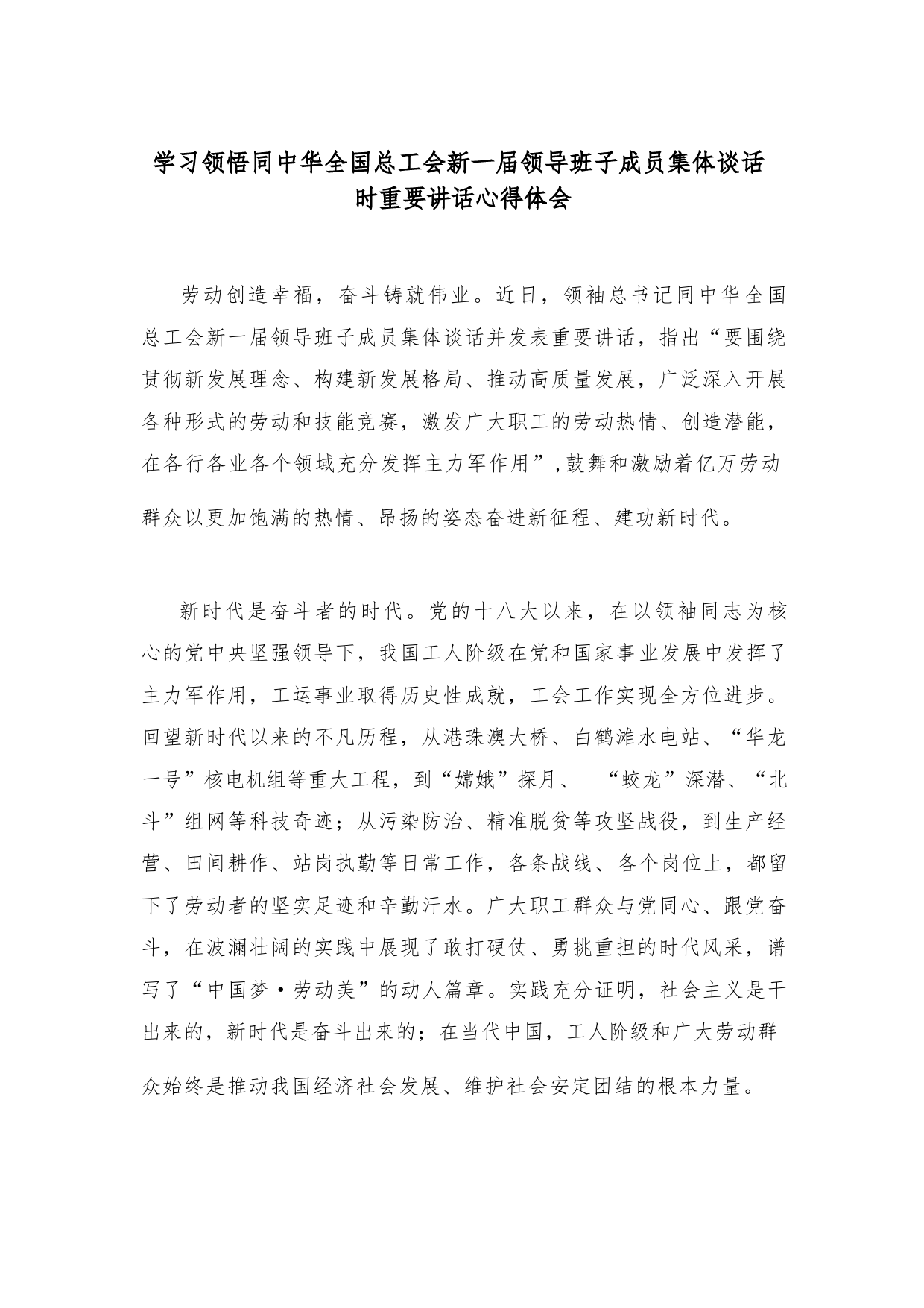 學(xué)習(xí)領(lǐng)悟同中華全國(guó)總工會(huì)新一屆領(lǐng)導(dǎo)班子成員集體談話時(shí)重要講話心得體會(huì)VIP免費(fèi)