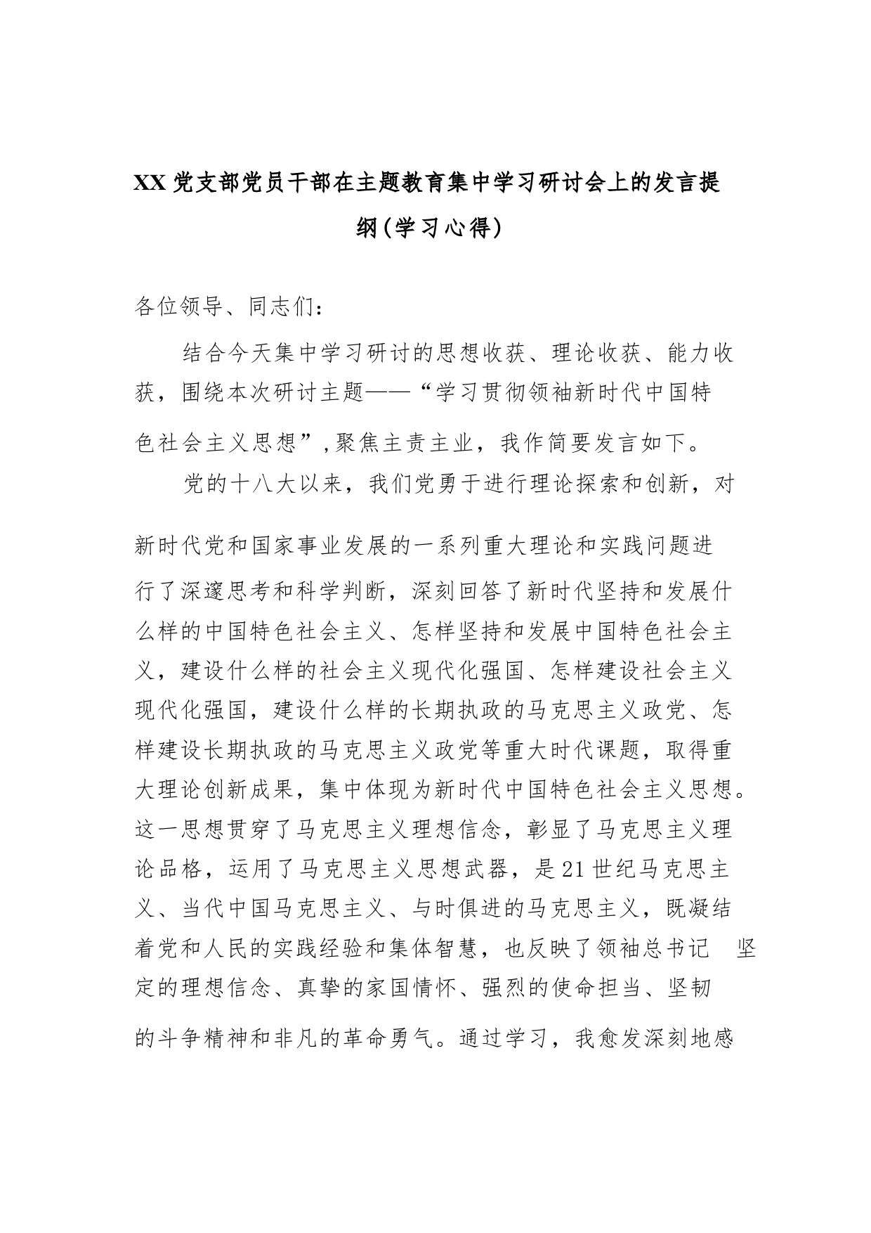 XX黨支部黨員干部在主題教育集中學(xué)習(xí)研討會上的發(fā)言提綱(學(xué)習(xí)心得)VIP免費(fèi)