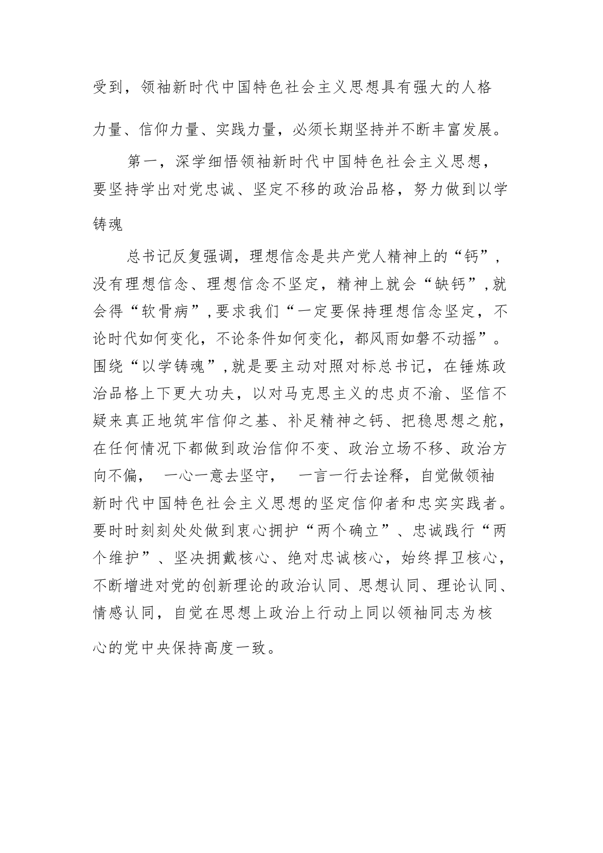 XX黨支部黨員干部在主題教育集中學(xué)習(xí)研討會上的發(fā)言提綱(學(xué)習(xí)心得)各位領(lǐng)導(dǎo)、同志們:結(jié)合今天集中學(xué)習(xí)研討的思想收獲、理論收獲、能力收獲,圍繞本次研討主題——“學(xué)習(xí)貫徹領(lǐng)袖新時代中國特色社會主義思想”,聚焦主責(zé)主業(yè),我作簡要發(fā)言如下。黨的十八大以來,我們黨勇于進(jìn)行理論探索和創(chuàng)新,對新時代黨和國家事業(yè)發(fā)展的一系列重大理論和實(shí)踐問題進(jìn)行了深邃思考和科學(xué)判斷,深刻回答了新時代堅持和發(fā)展什么樣的中國特色社會主義、怎樣堅持和發(fā)展中國特色社會主義,建設(shè)什么樣的社會主義現(xiàn)代化強(qiáng)國、怎樣建設(shè)社會主義現(xiàn)代化強(qiáng)國,建設(shè)什么樣的長期執(zhí)政的馬克思主義政黨...