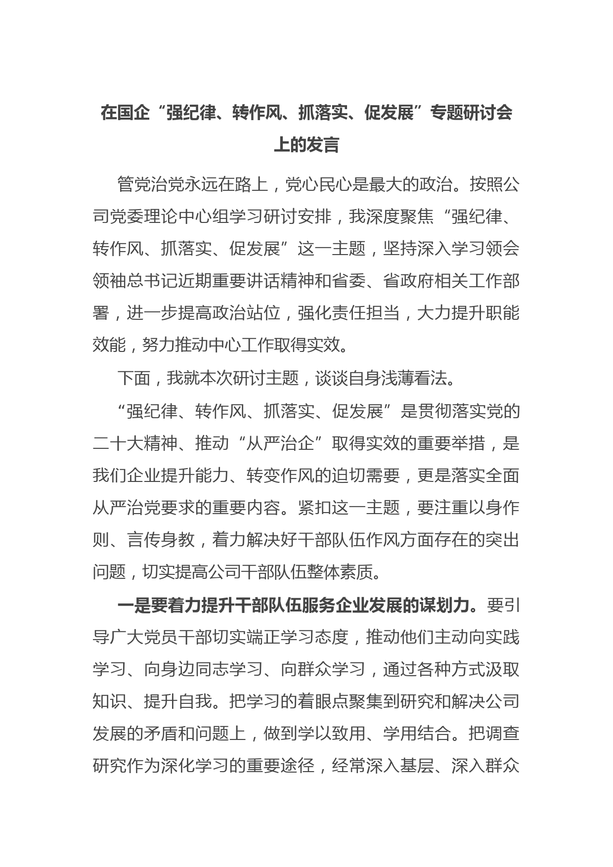 在國企“強紀律、轉作風、抓落實、促發(fā)展”專題研討會上的發(fā)言 (1)VIP免費
