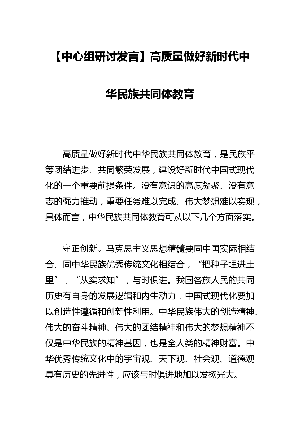 【中心組研討發(fā)言】高質(zhì)量做好新時(shí)代中華民族共同體教育VIP免費(fèi)