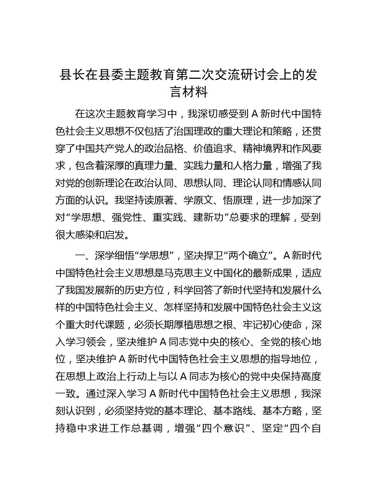 縣長在主題教育第二次交流研討會上的發(fā)言VIP免費