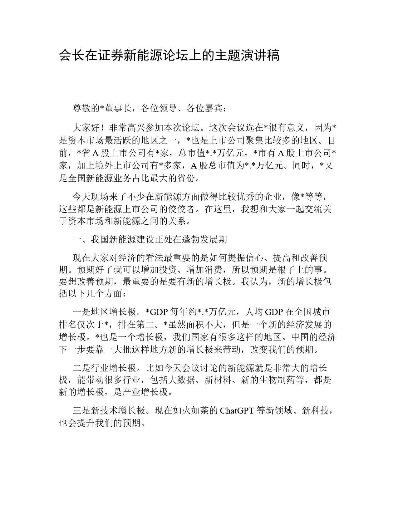 會長在證券新能源論壇上的主題演講稿VIP免費