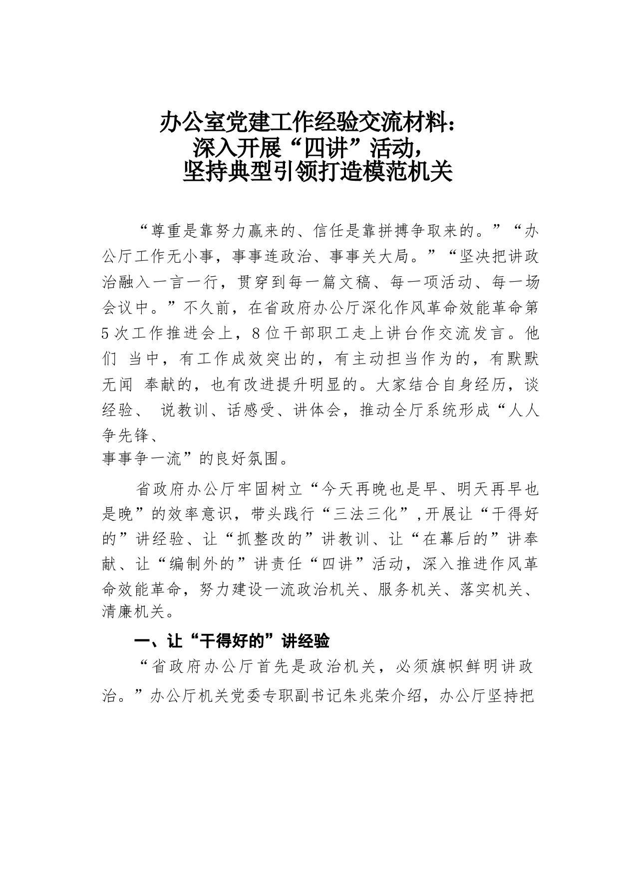 辦公室黨建工作經(jīng)驗(yàn)交流材料:深入開展“四講”活動(dòng),堅(jiān)持典型引領(lǐng)打造模范機(jī)關(guān)VIP免費(fèi)
