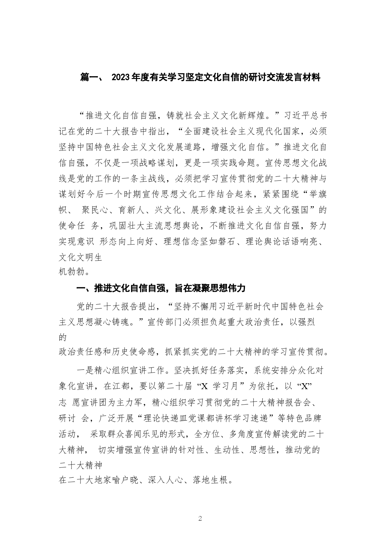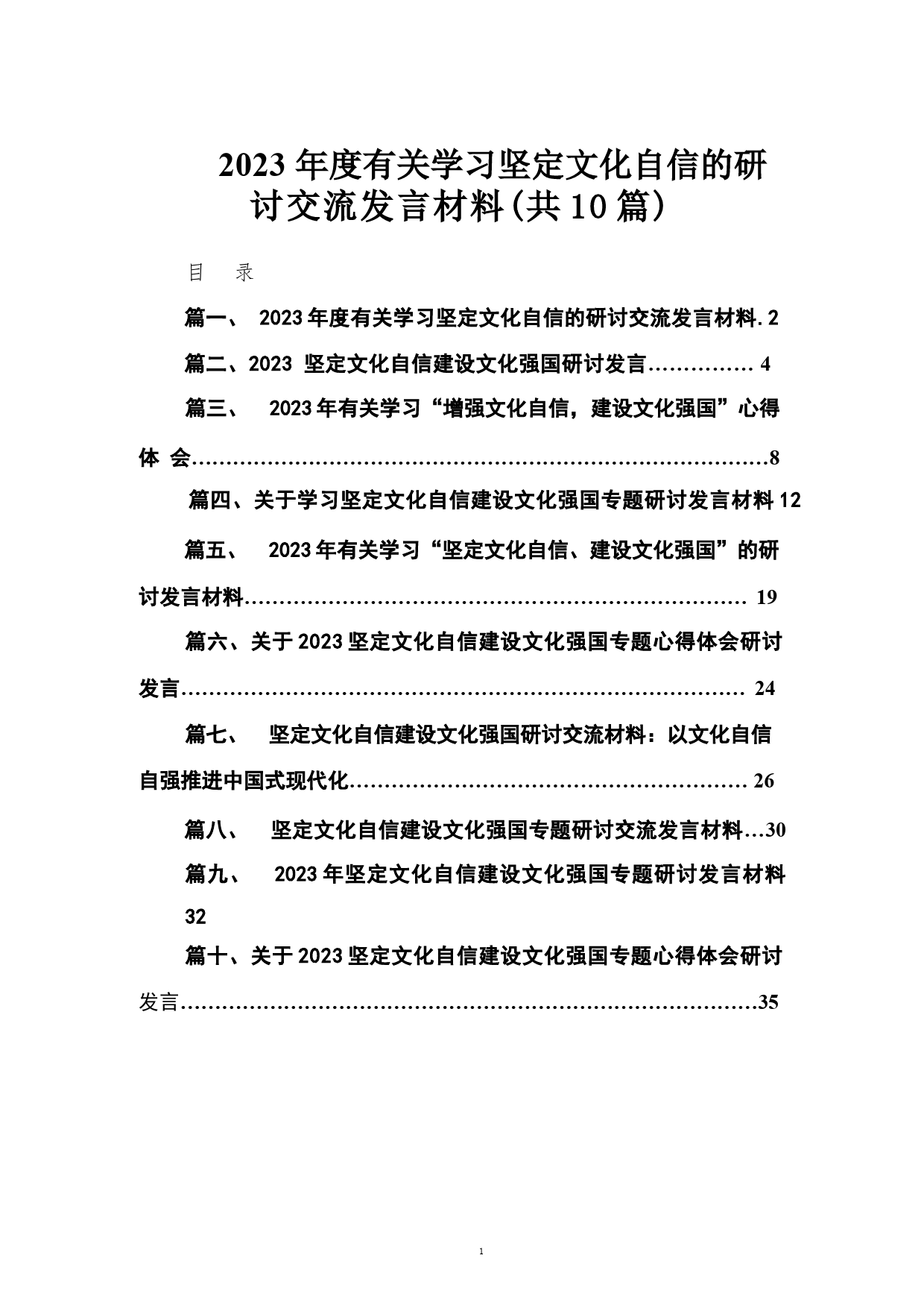 2023年度有關(guān)學(xué)習(xí)堅(jiān)定文化自信的研討交流發(fā)言材料(共10篇)VIP免費(fèi)