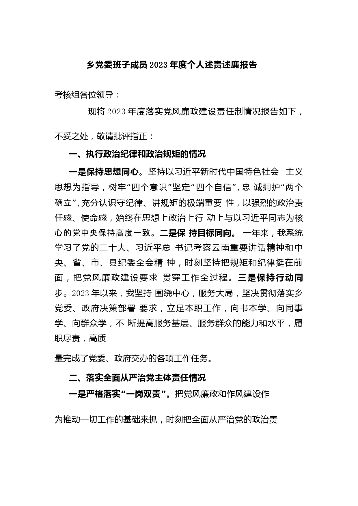 鄉(xiāng)黨委班子成員2023年度個(gè)人述責(zé)述廉報(bào)告VIP免費(fèi)