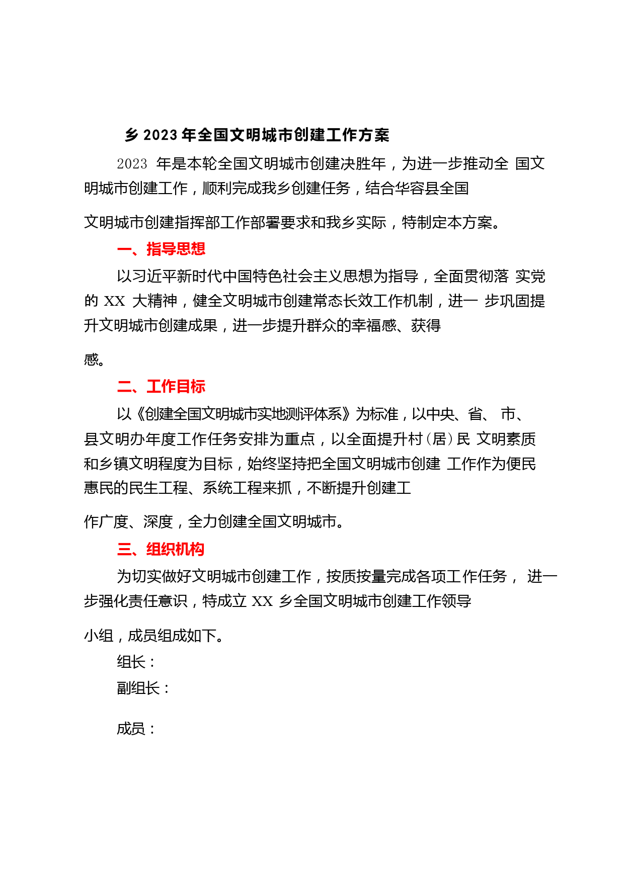 鄉(xiāng)2023年全國文明城市創(chuàng)建工作方案VIP免費