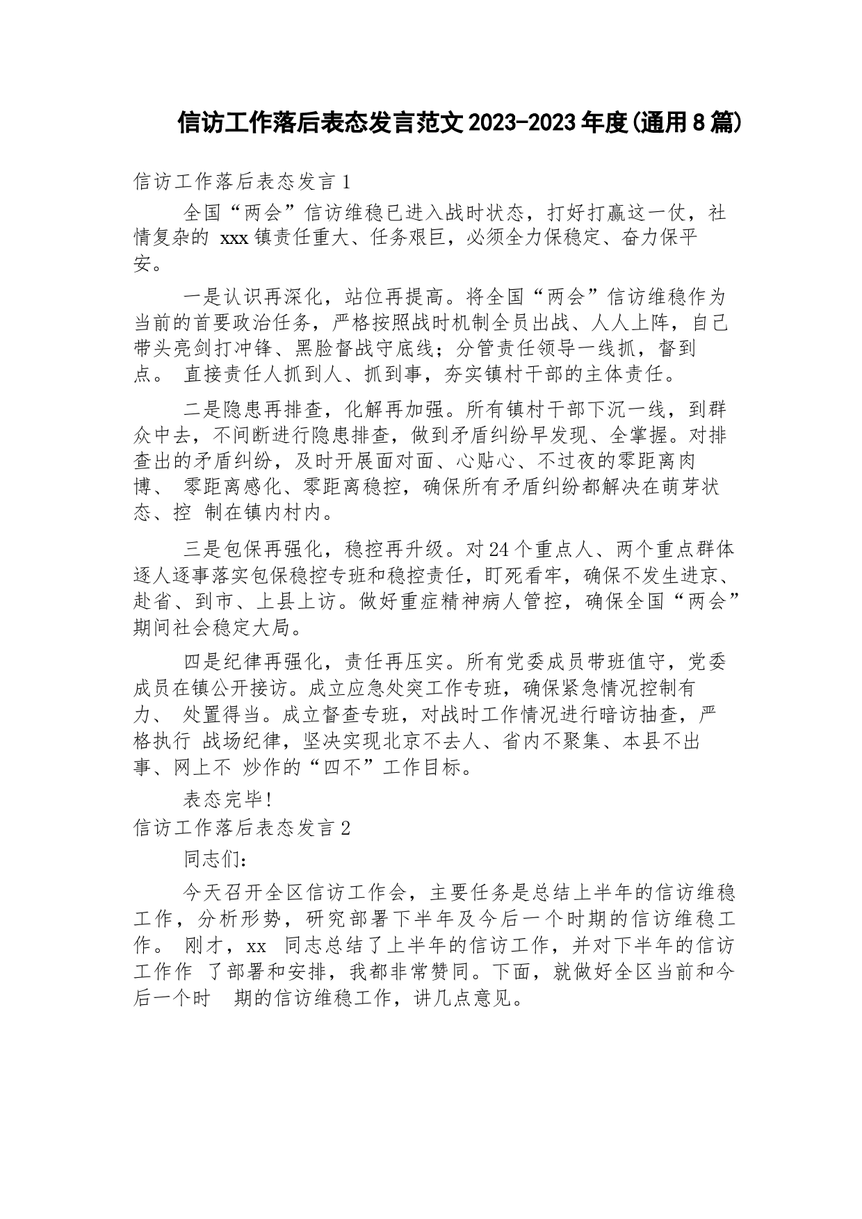 信訪工作落后表態(tài)發(fā)言范文2023-2023年度(通用8篇)VIP免費(fèi)