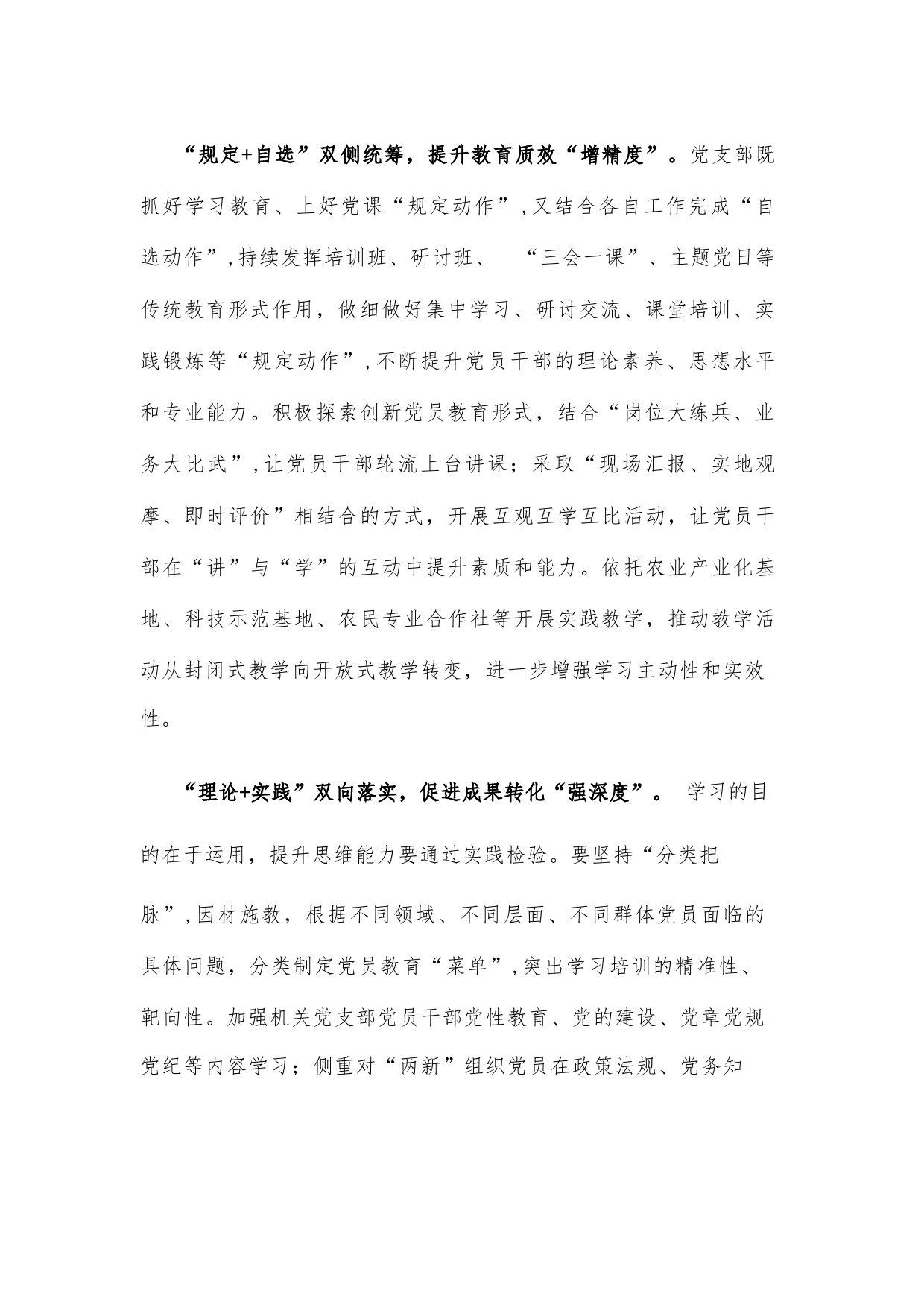 黨員教育培訓(xùn)研討發(fā)言稿黨員教育是黨的建設(shè)的重要基礎(chǔ)工作和長期戰(zhàn)略任務(wù),是每位黨員的必修課,是黨常抓不懈的政治任務(wù),對于培養(yǎng)國家儲備人才、建設(shè)干部隊伍意義重大。新形勢下,各級黨組織要立足實際、精心謀劃,通過延伸陣地觸角、創(chuàng)新方式方法、注重學(xué)習(xí)實效,不斷推動黨員教育走深走實、見行見效,切實為基層黨員“充電蓄能”。“線上+線下”雙維發(fā)力,拓寬教育渠道“增廣度”。隨著信息技術(shù)高速發(fā)展、智能電子設(shè)備的不斷普及,學(xué)習(xí)渠道已延伸到網(wǎng)絡(luò),黨員教育培訓(xùn)也要創(chuàng)新方式,要堅持“線上+線下”同頻發(fā)力,線上通過“學(xué)習(xí)強(qiáng)國”“共產(chǎn)黨員網(wǎng)”“黨課開講啦”、...