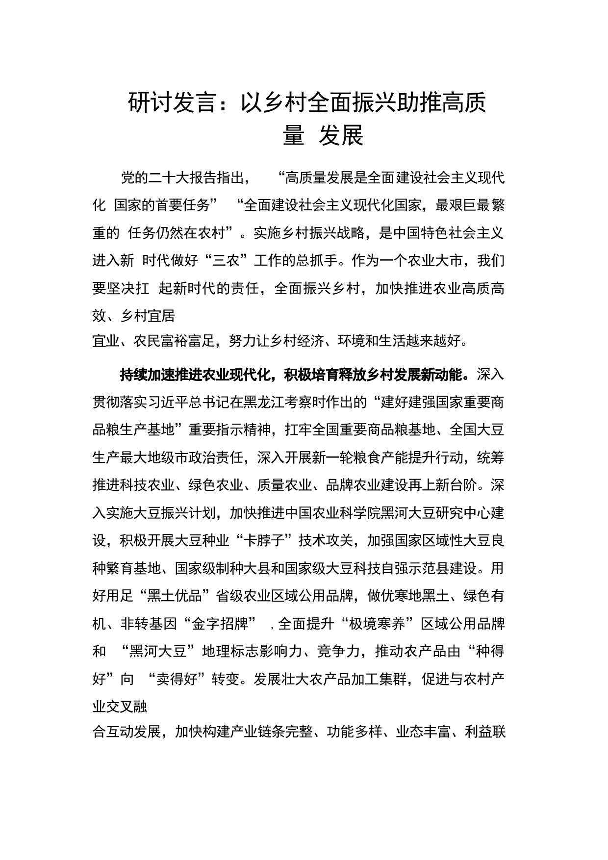 研討發(fā)言:以鄉(xiāng)村全面振興助推高質(zhì)量發(fā)展VIP免費