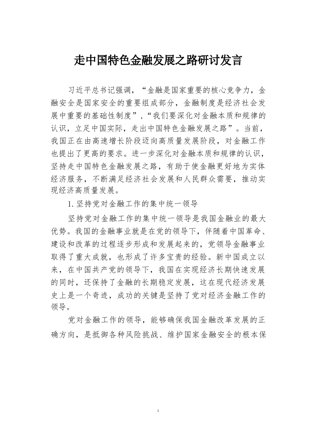 走中國(guó)特色金融發(fā)展之路研討發(fā)言VIP免費(fèi)