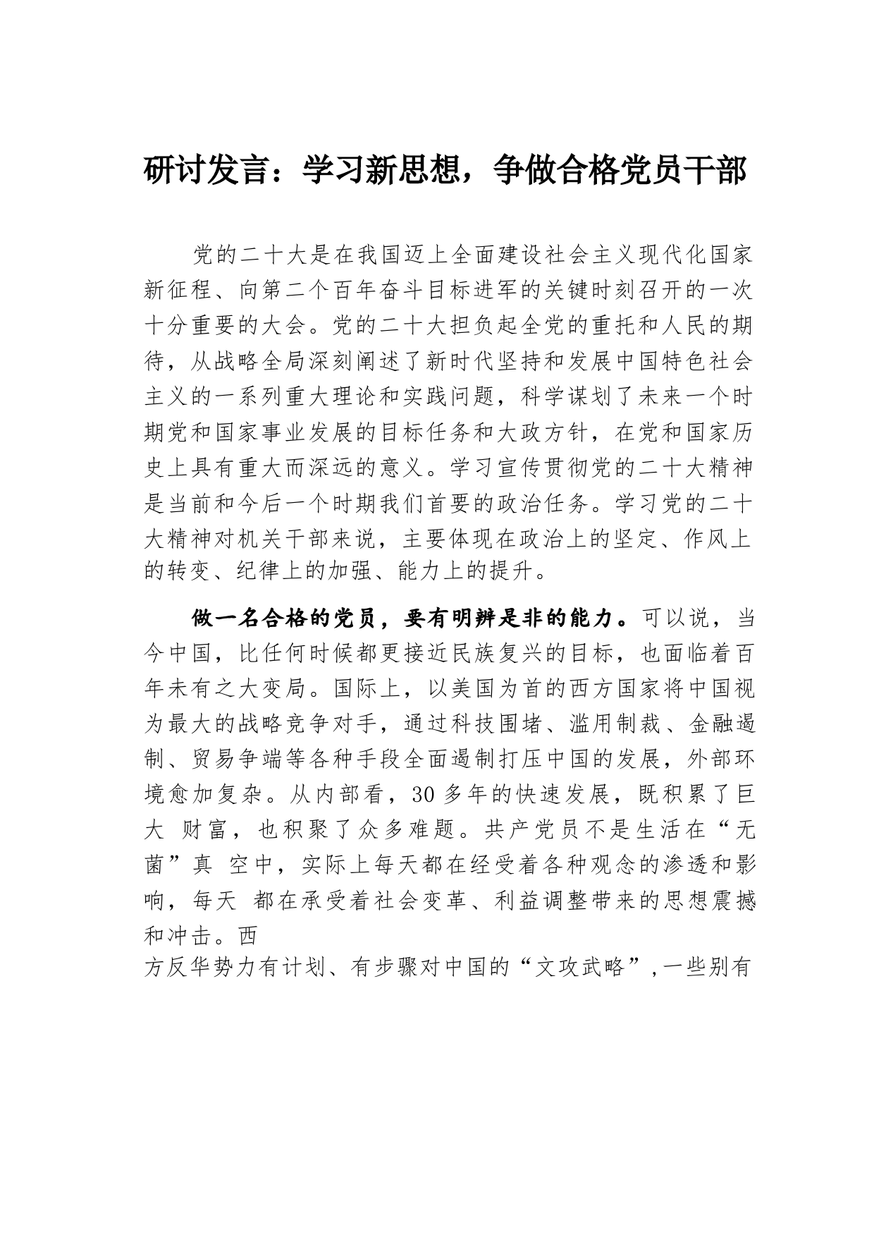 研討發(fā)言:學(xué)習(xí)新思想,爭(zhēng)做合格黨員干部VIP免費(fèi)