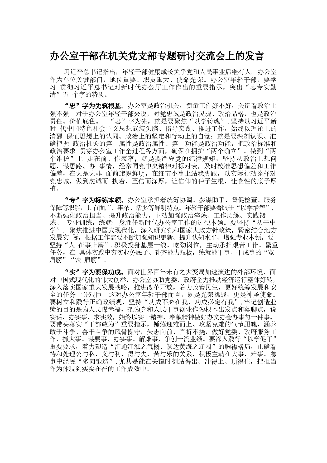 辦公室干部在機(jī)關(guān)黨支部專題研討交流會(huì)上的發(fā)言VIP免費(fèi)